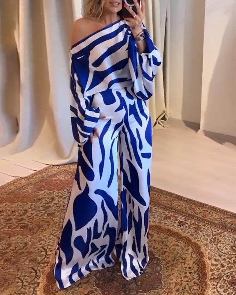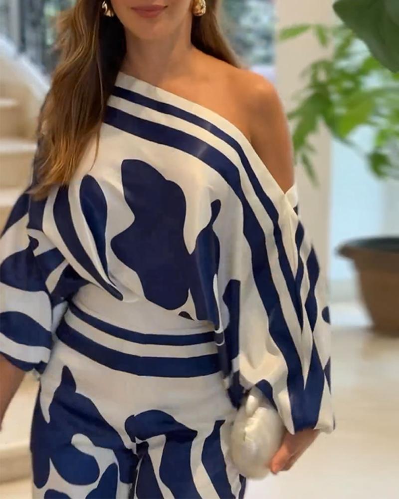 Colorblock Skew Neck Batwing Sleeve Top & Straight Leg Pants Set