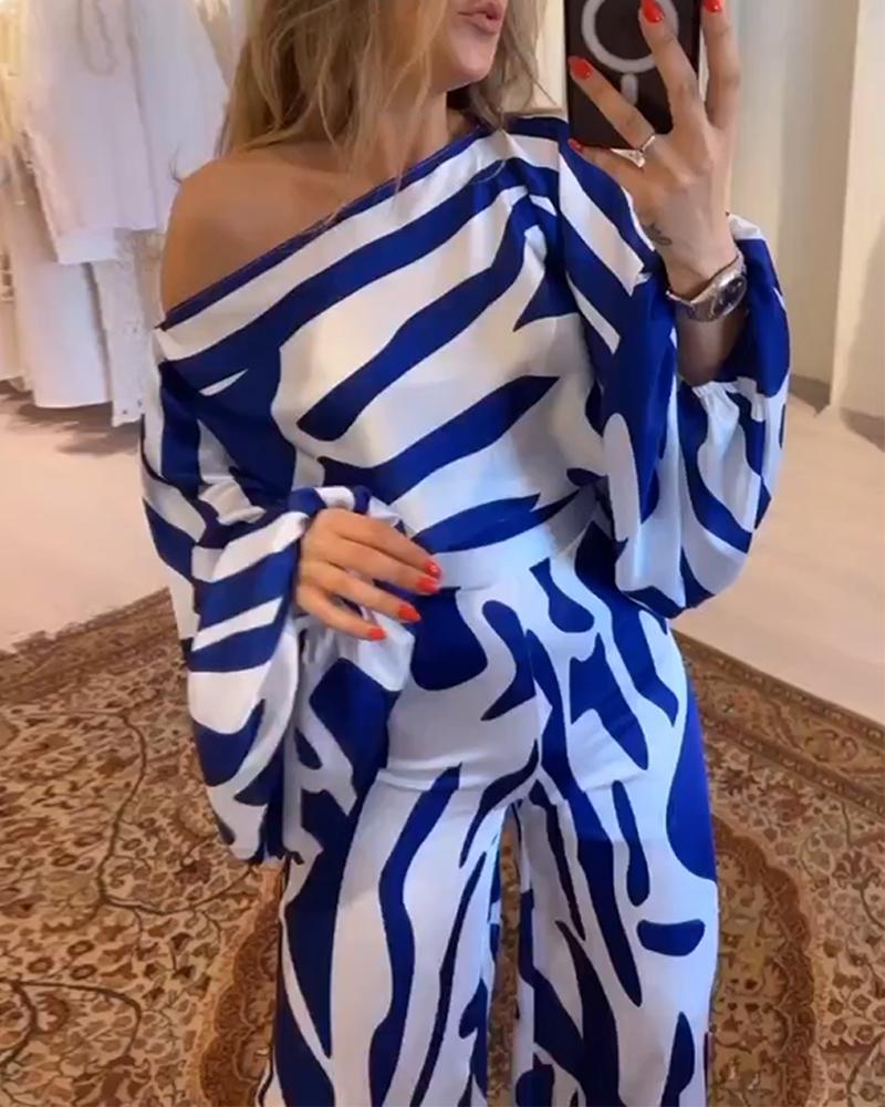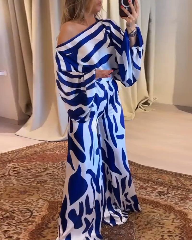 Colorblock Skew Neck Batwing Sleeve Top & Straight Leg Pants Set