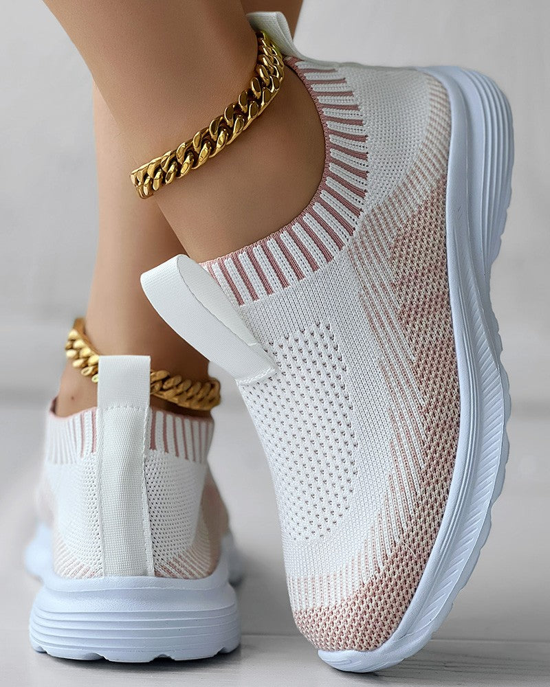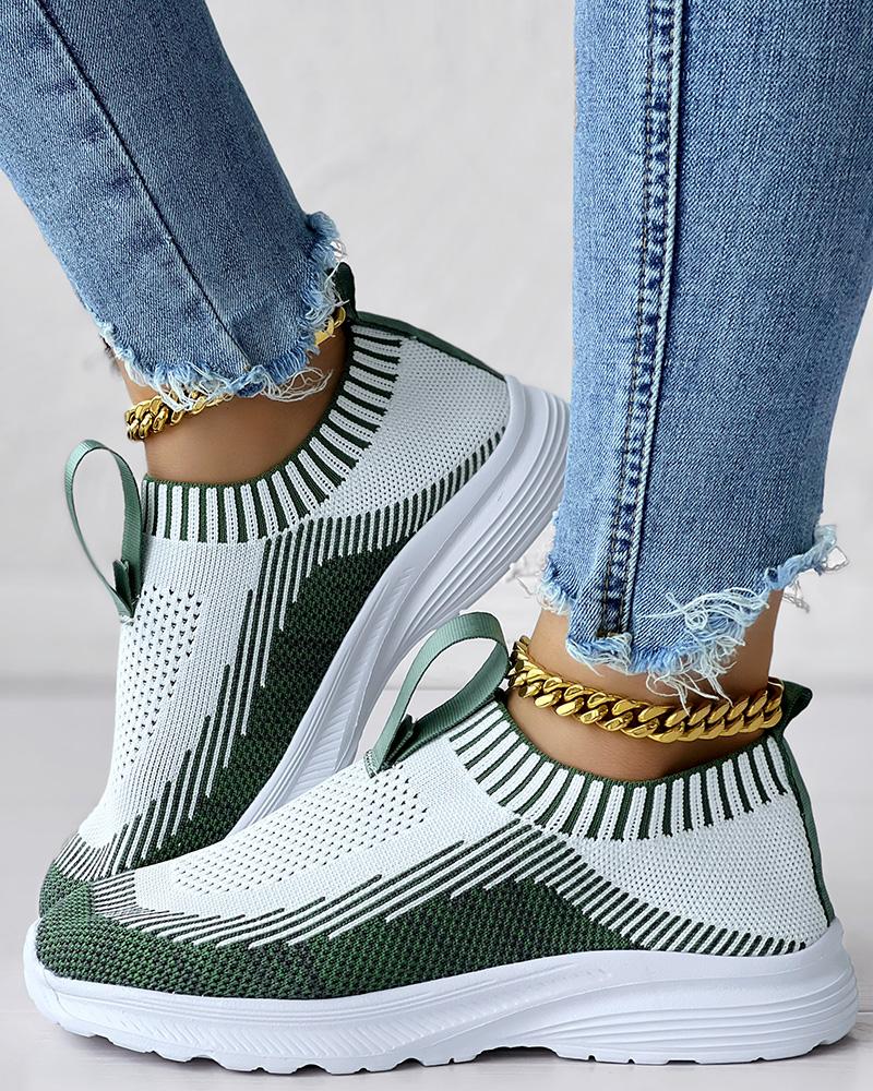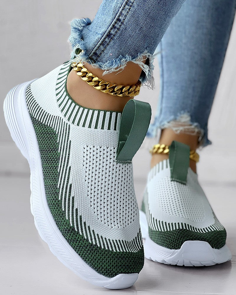 Colorblock Slip On Knit Running Sneakers