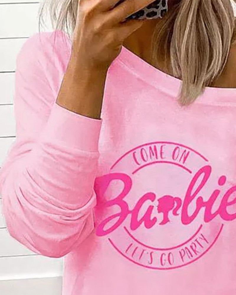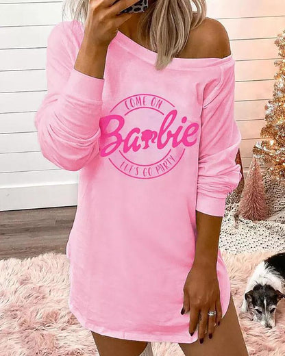 Come On Barbie Let's Go Party Print Long Sleeve Sweatshirt Dress