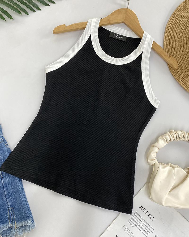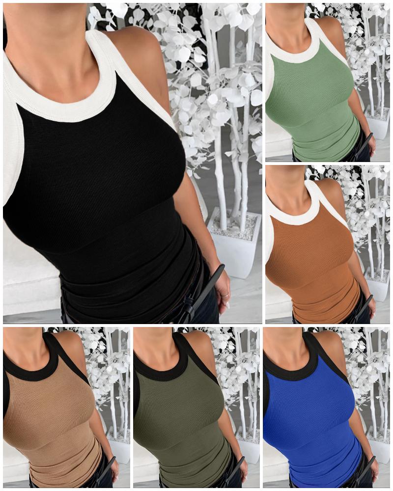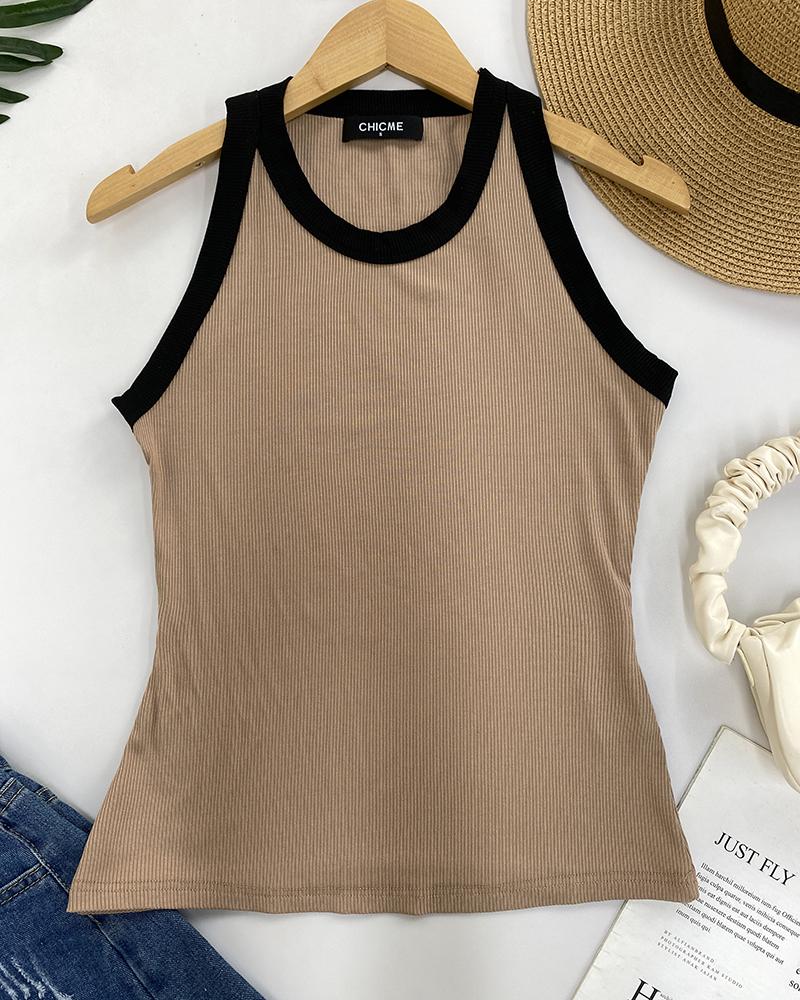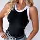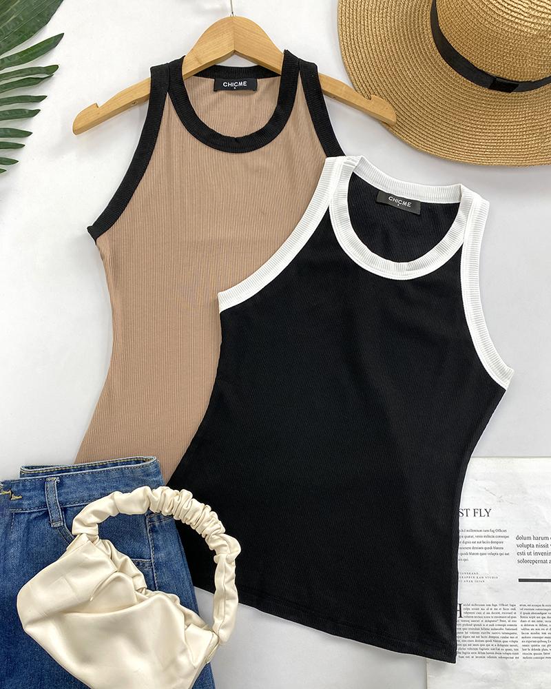 Contrast Binding Tank Tops Summer Sleeveless Basic Cami Top Shirt Slim Knit Ribbed Racerback Blouses