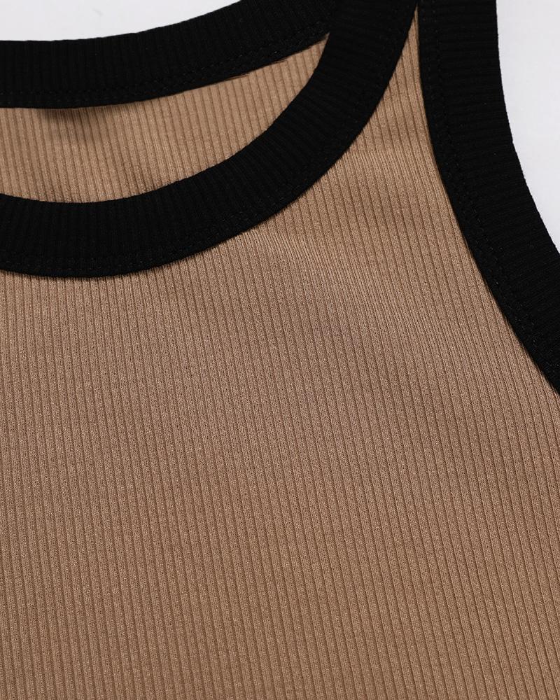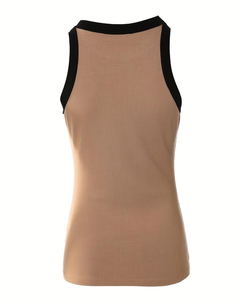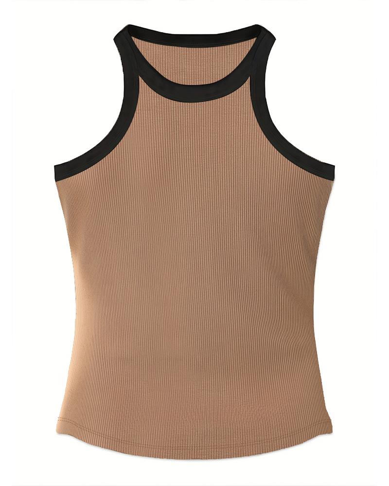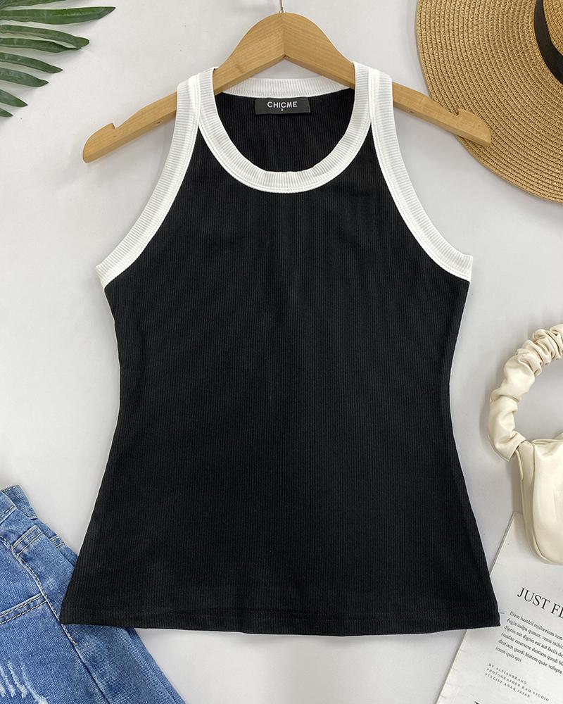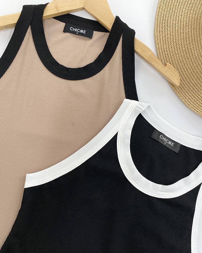 Contrast Binding Tank Tops Summer Sleeveless Basic Cami Top Shirt Slim Knit Ribbed Racerback Blouses