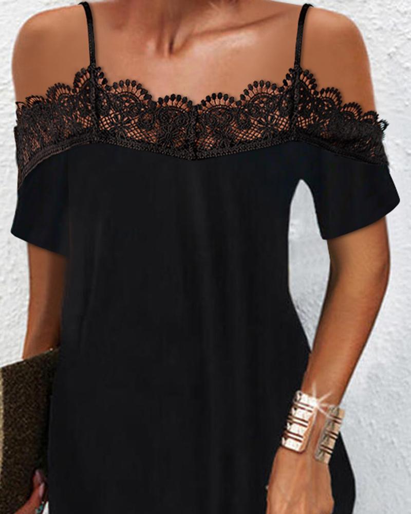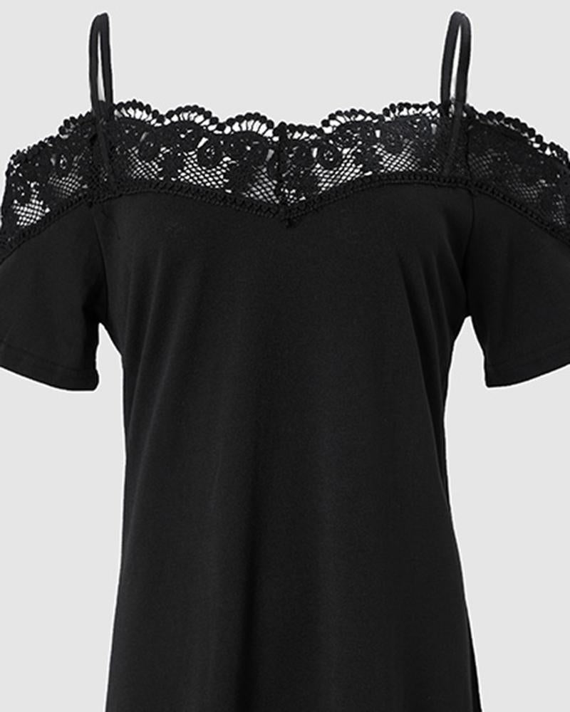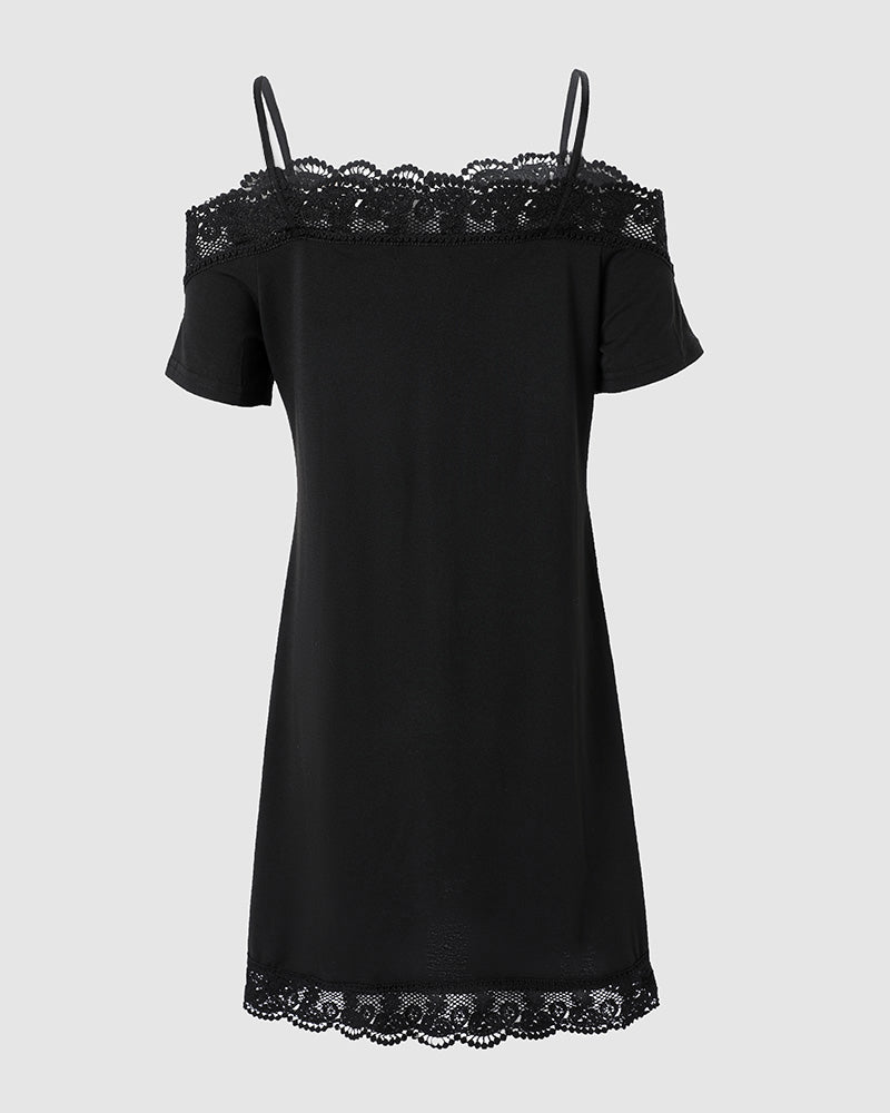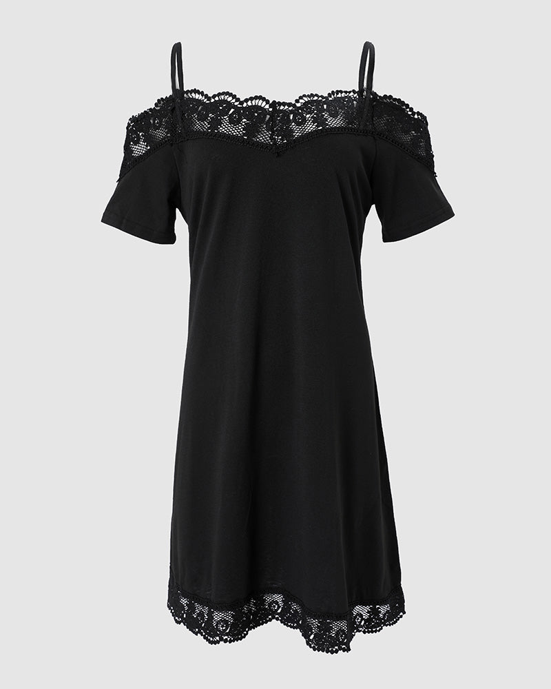 Contrast Lace Cold Shoulder Casual Dress