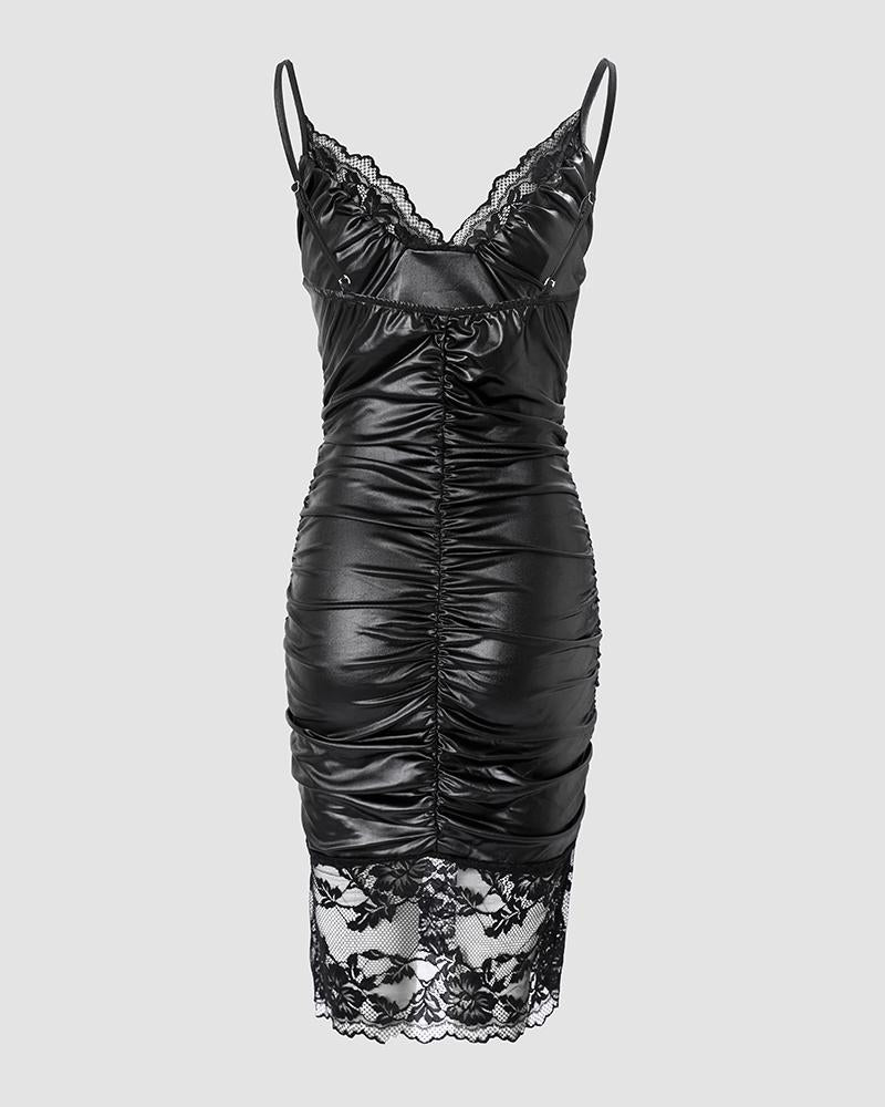 Contrast Lace Ruched Bodycon Dress