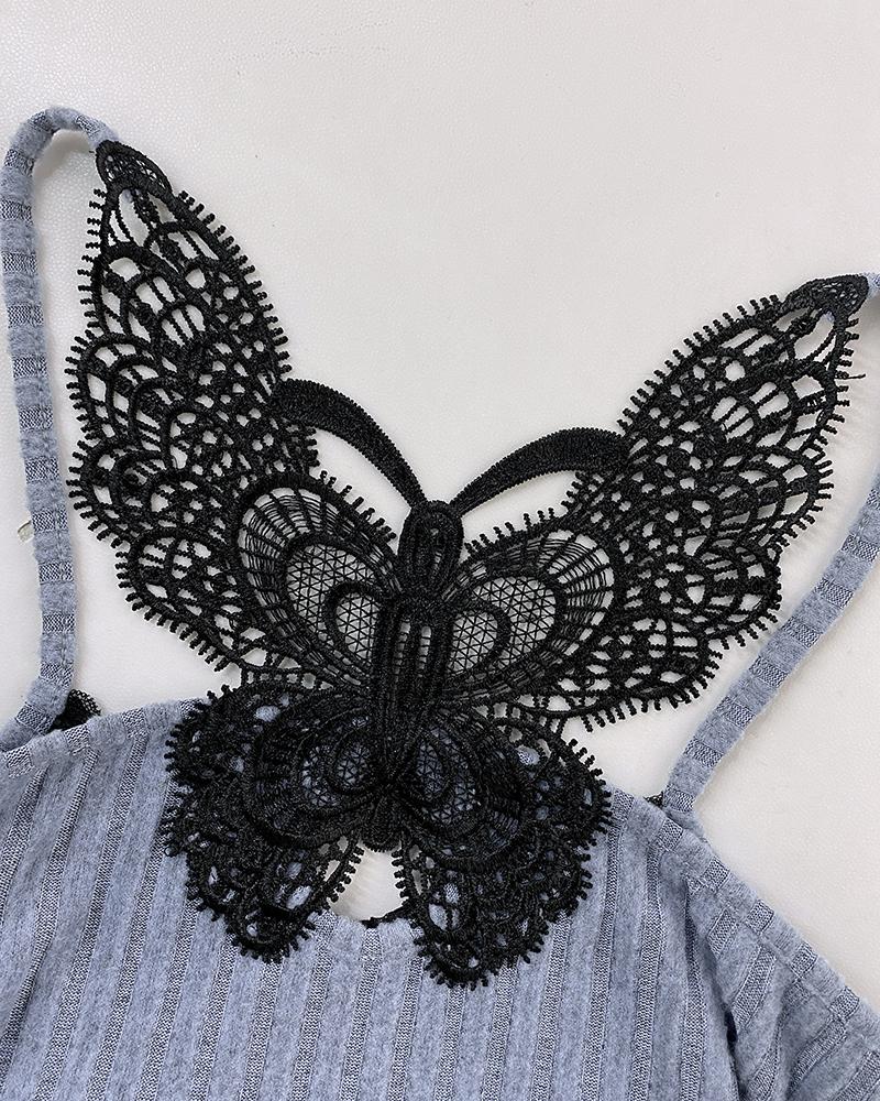 Contrast Lace Square Neck Spaghetti Strap Tank Sexy Waist Slim Fit Knit Top