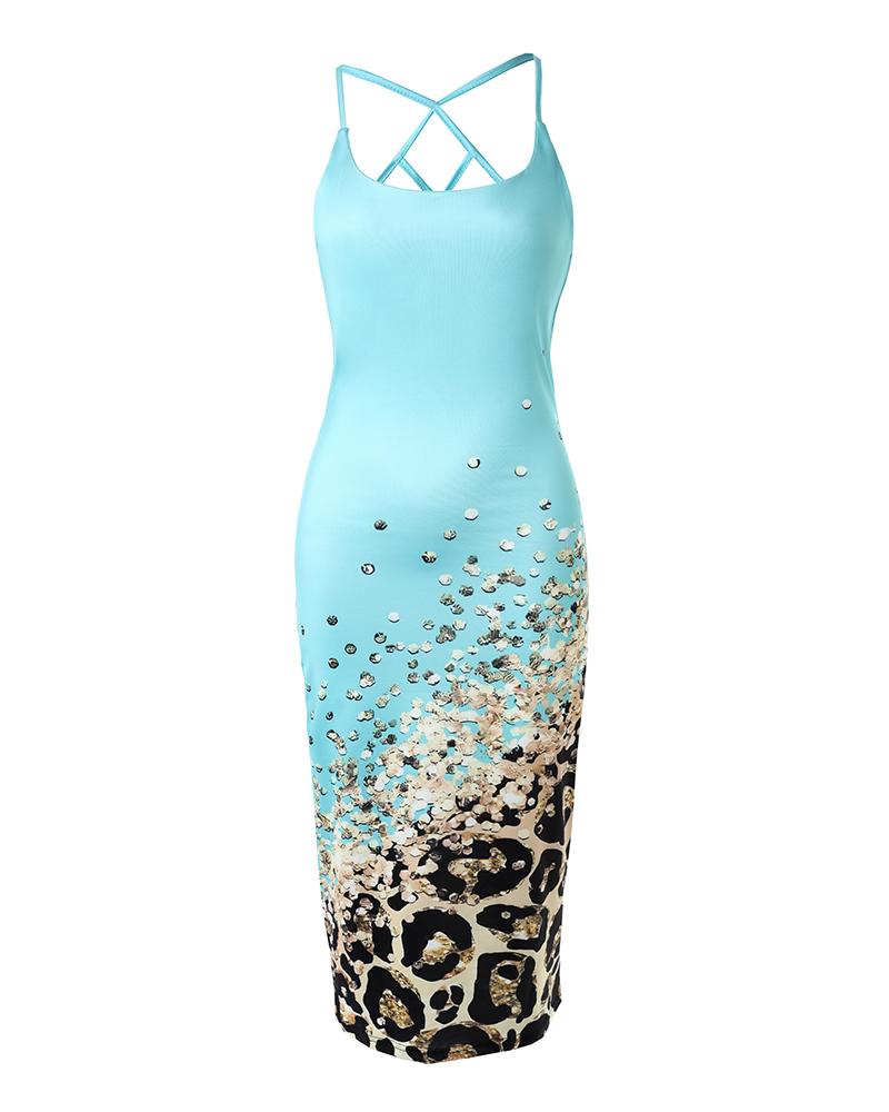 Contrast Leopard Print Fishnet Backless Bodycon Dress