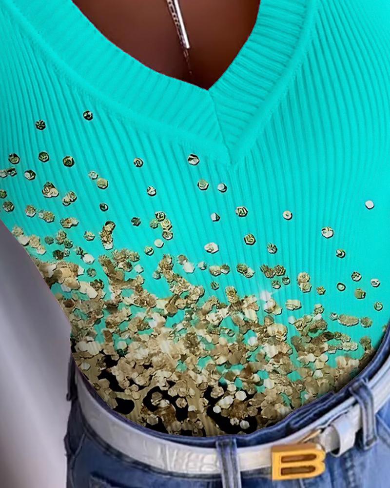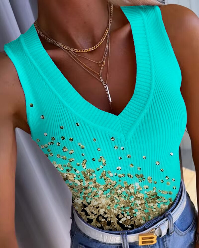 Contrast Leopard Print Ribbed Casual Tank Top