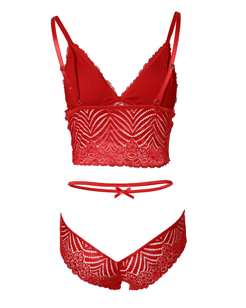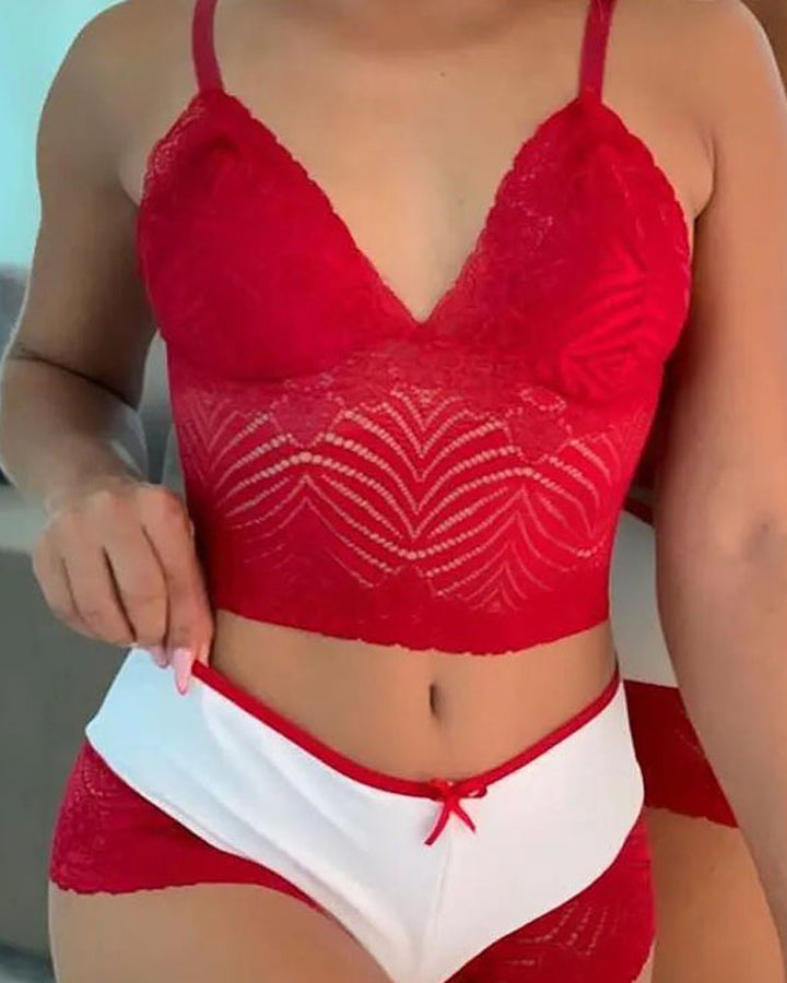 Contrast Paneled Bowknot Decor Lace Christmas Lingerie Set