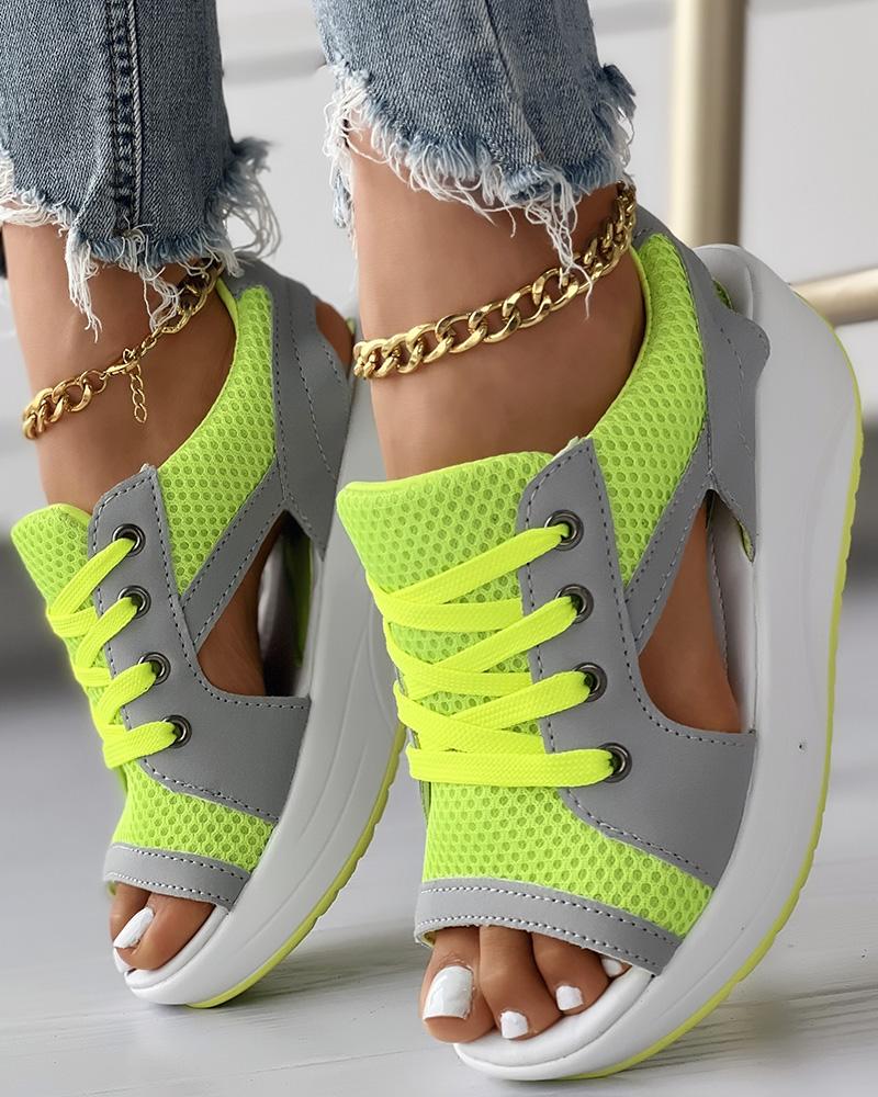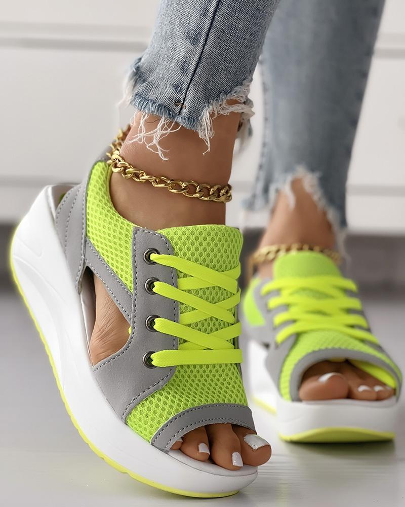 Contrast Paneled Cutout Lace up Muffin Sandals