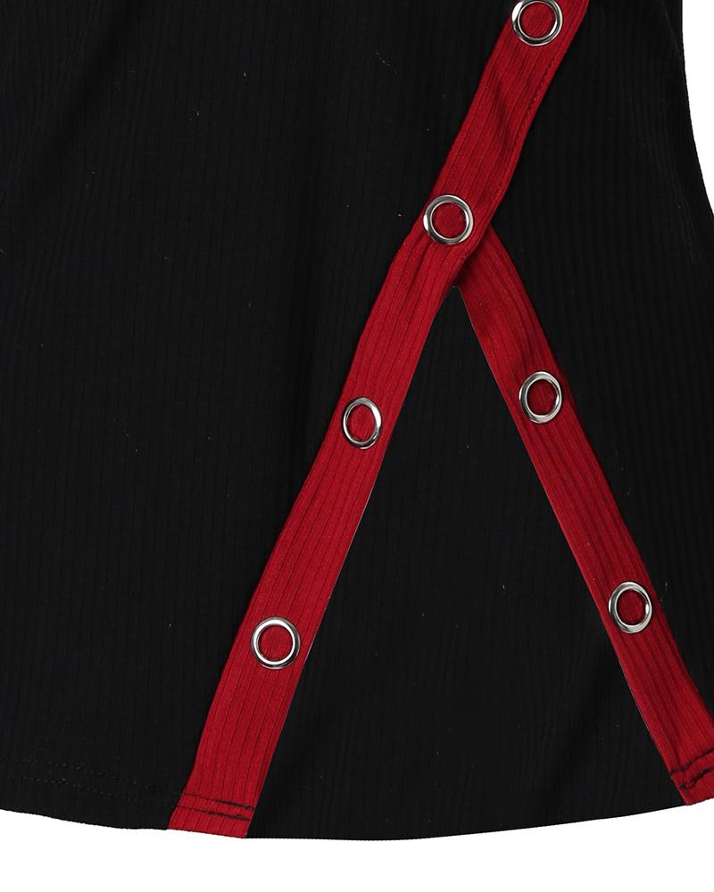 Contrast Paneled Zip Detail Cold Shoulder Top