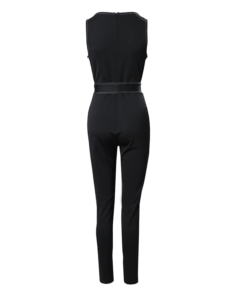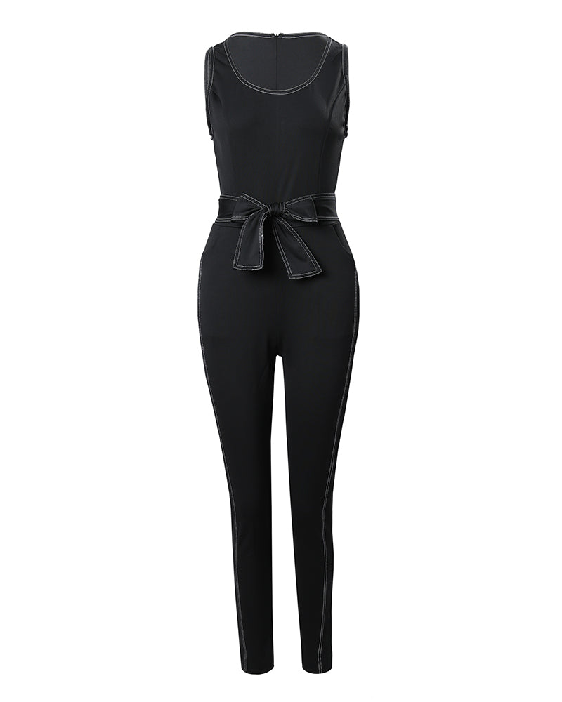 Contrast Piping Sleeveless Tied Detail Jumpsuit