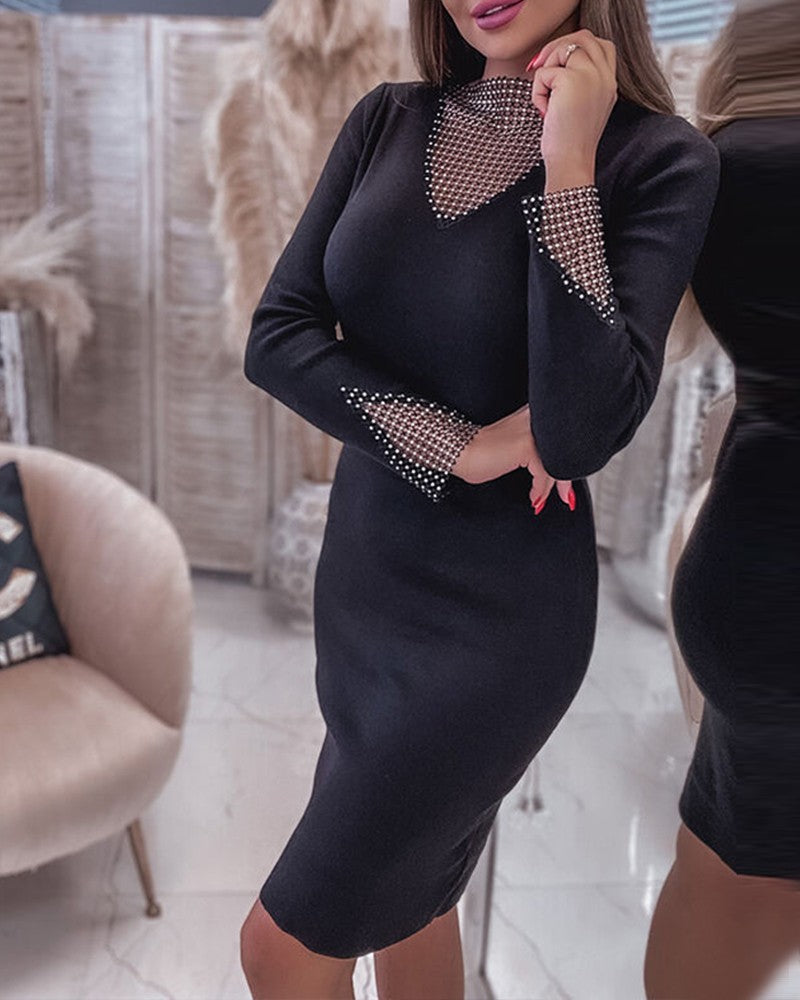 Contrast Sequin Hollow Out Long Sleeve Dress