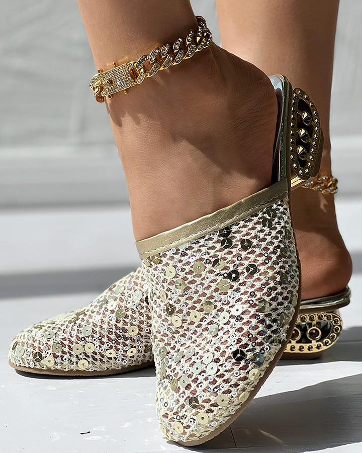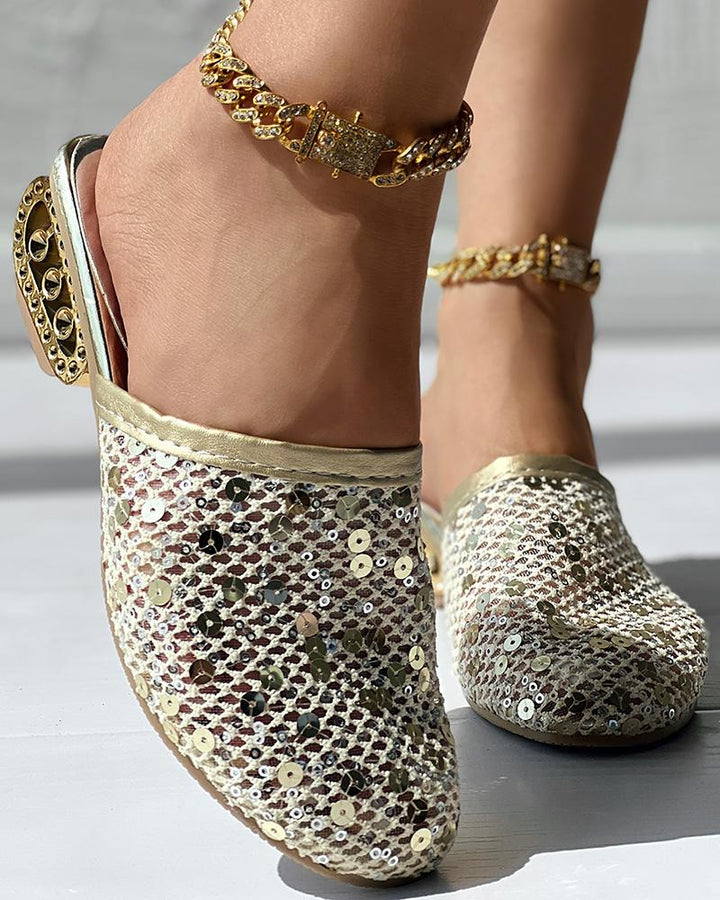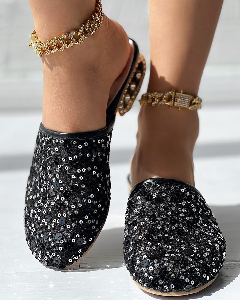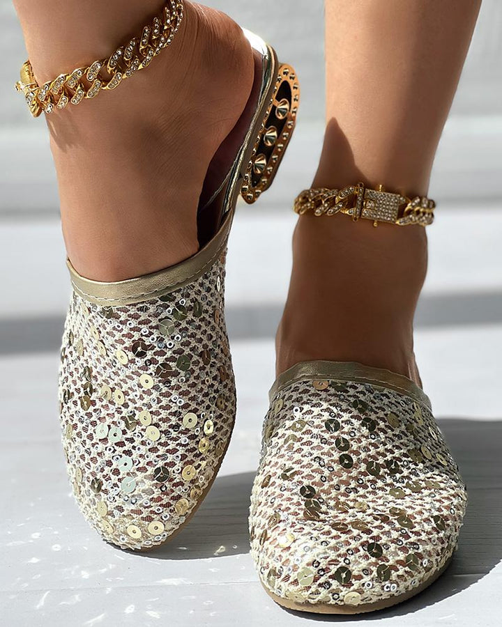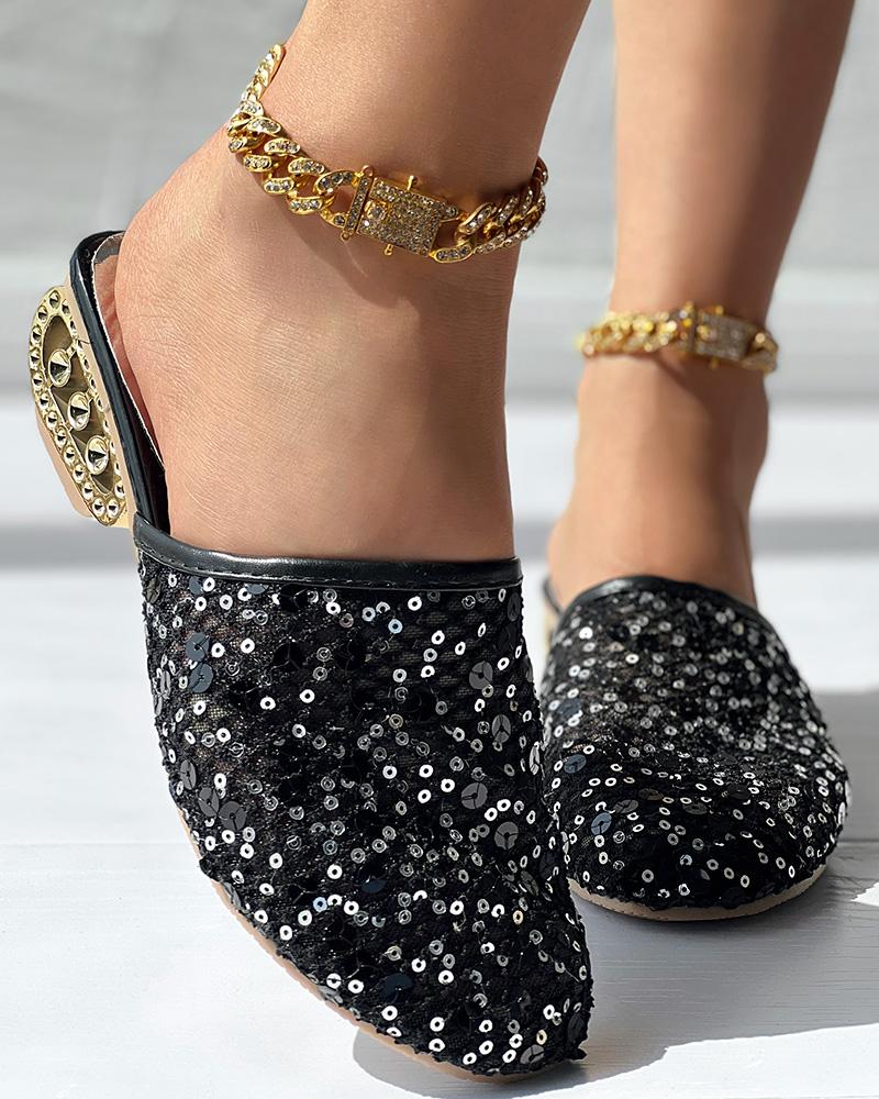 Contrast Sequin Lace Slipper Loafers