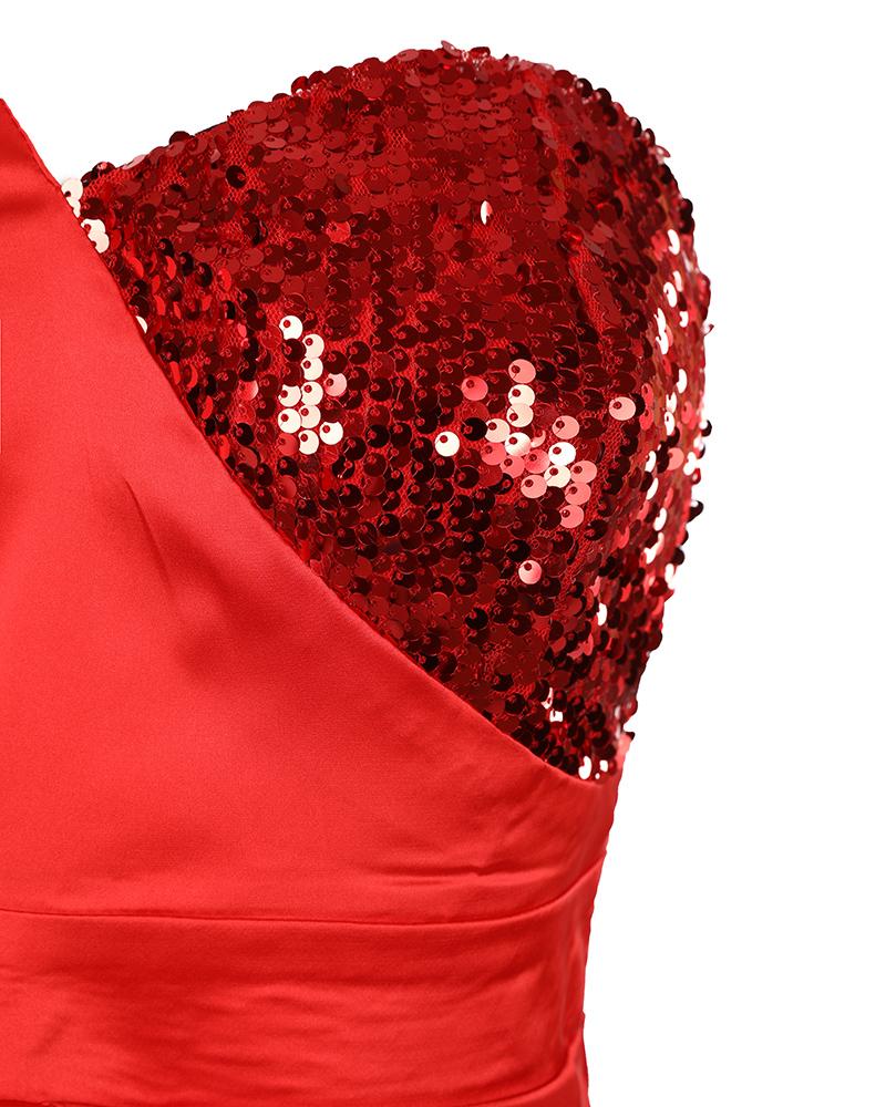 Contrast Sequin One Shoulder Split Thigh Evening Dress