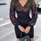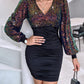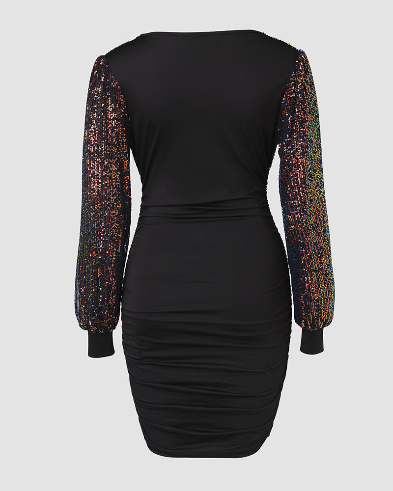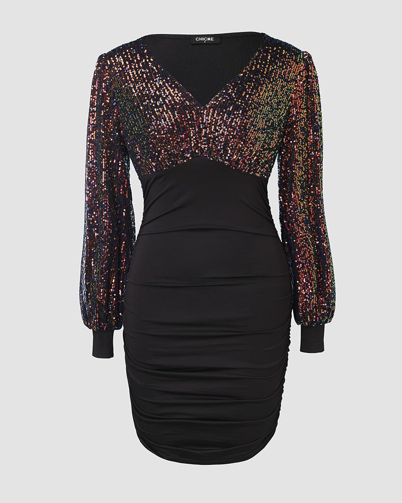 Contrast Sequin Ruched V Neck Bodycon Dress