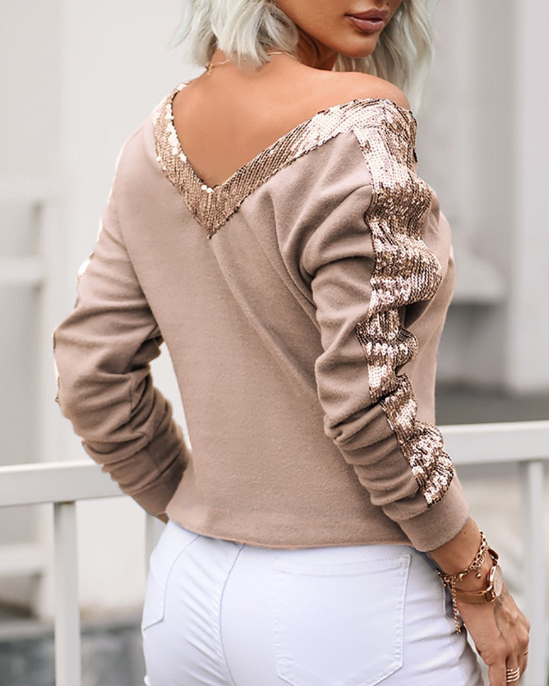 Contrast Sequins Fuzzy Long Sleeve Knit Sweater