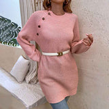 Women Crew Neck Long Sleeve Knit Stretchable Elasticity Slim Sweater Bodycon Mini Sweater Dress K434