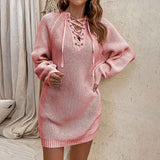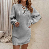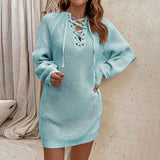 Women's Sexy V Neck Knit Sweater Dresses Bodycon Long Sleeve Slim Fit Ribbed Knitted Mini Dress K435