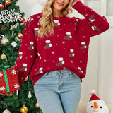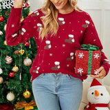 Ugly Christmas Sweaters for Women Crewneck Knitted Pullover Snowflake Print Jumper Tops Long Sleeve Fall Blouses K484