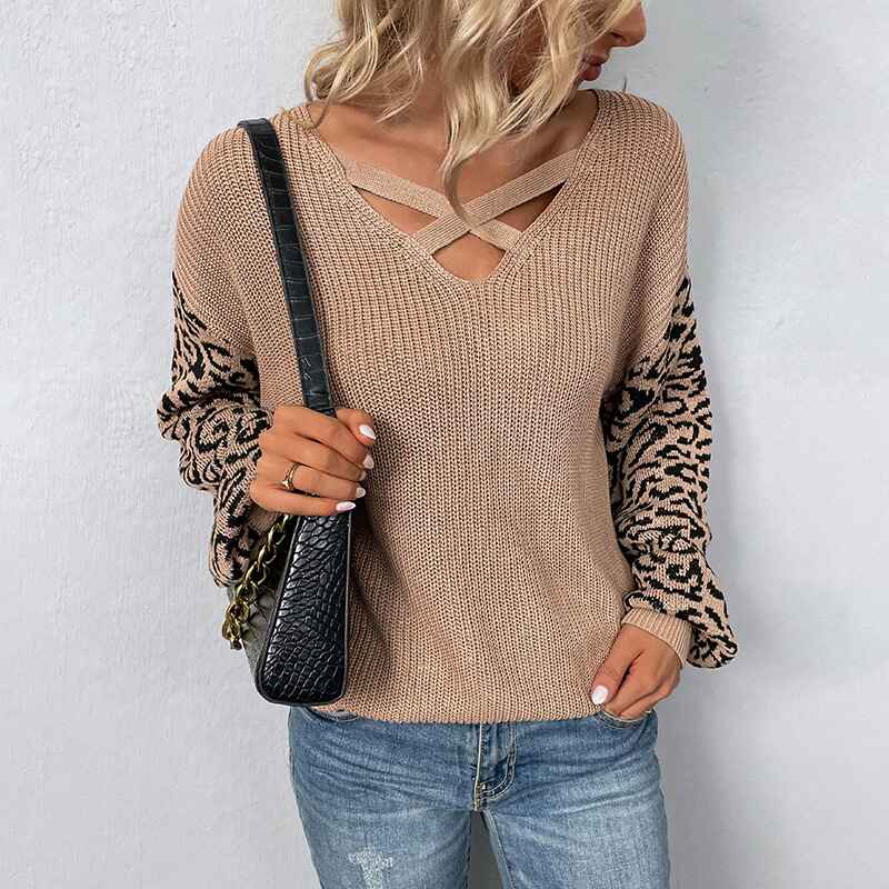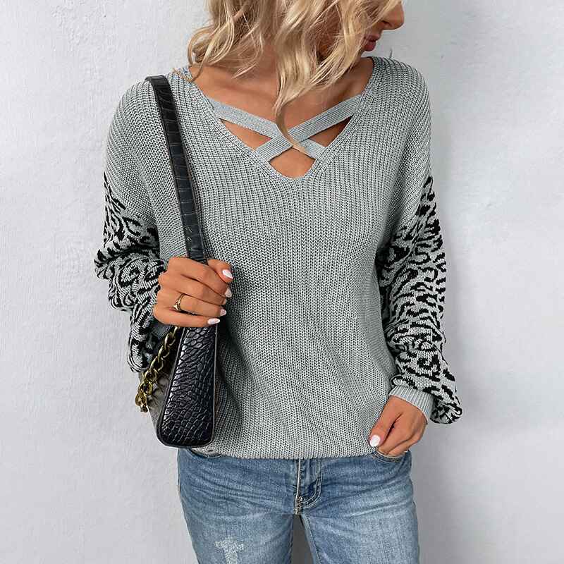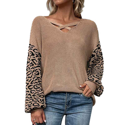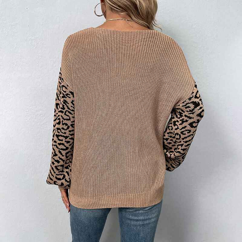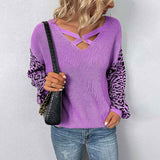 Women's Fall Pullover Sweater Tops Leopard Print Knitted Sweaters Jumper Tops Long Sleeve Cable Knit Sweaters Sweatshirt K413