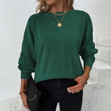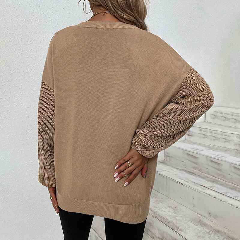 Women's Crewneck Long Sleeve Drop Shoulder Casual Solid Cable Knit Chunky Contrast Pullover Sweater Top K273