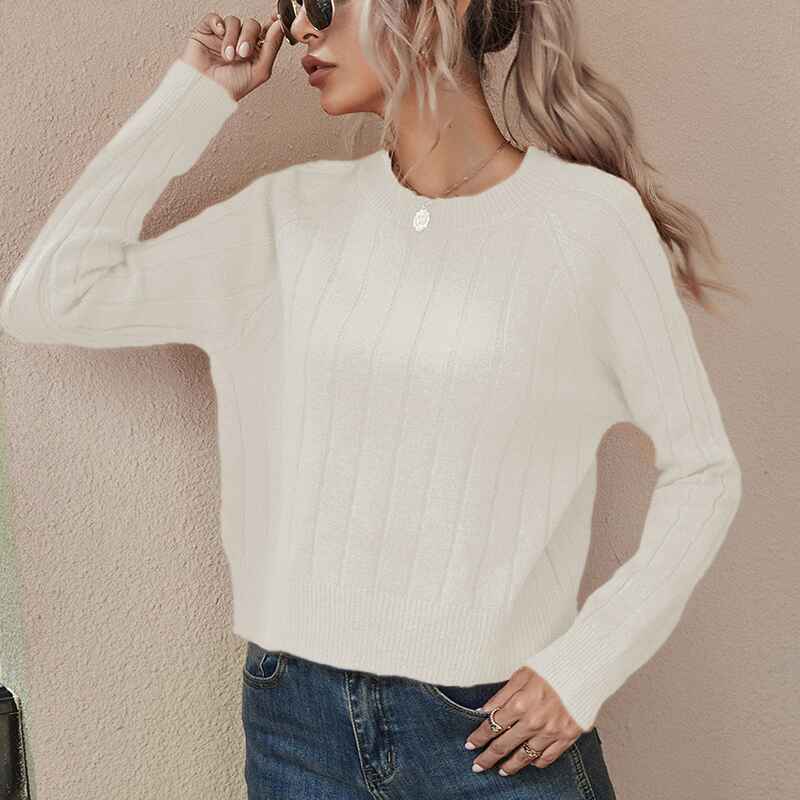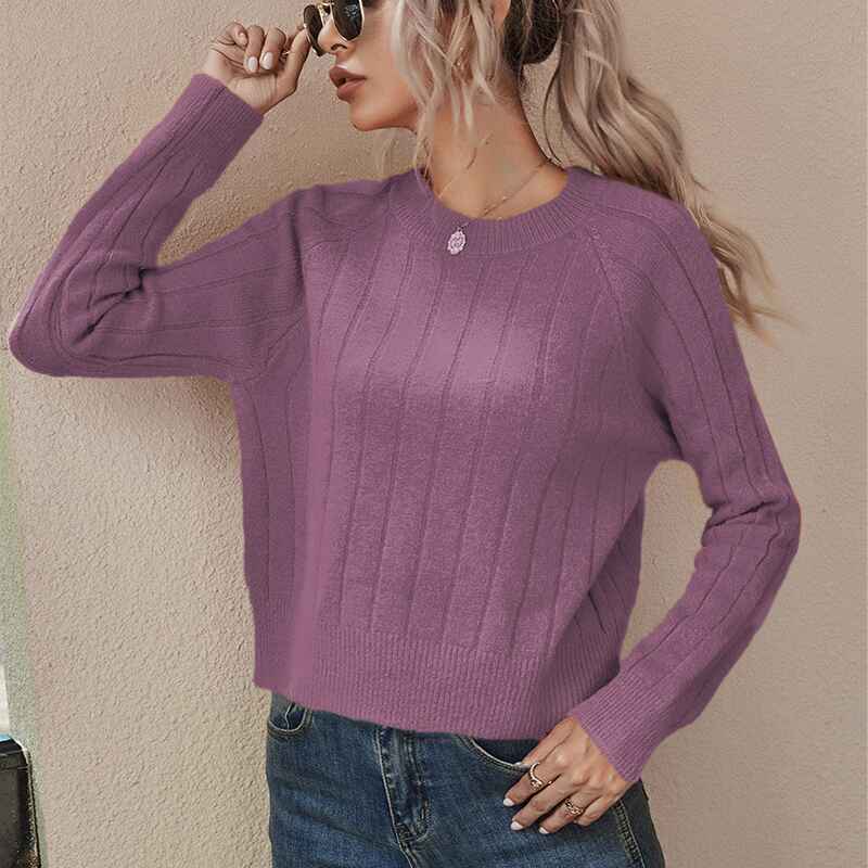 Women's Fine Gauge Stretch Crewneck Pullover Sweater K375
