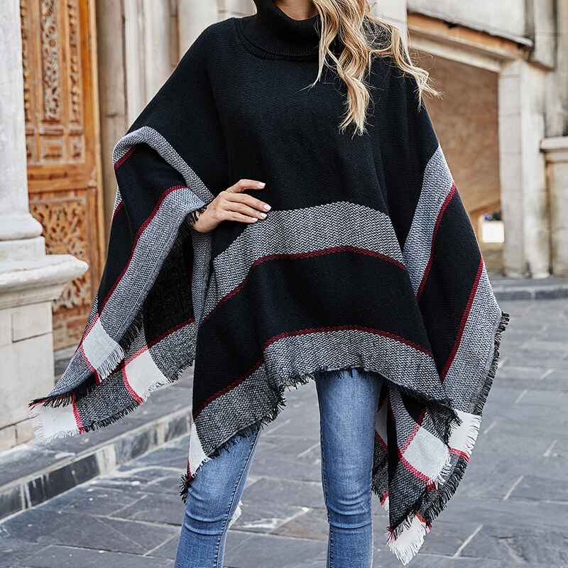 Women's Shawl Wraps Poncho Sweater Open Front Cape Cardigan for Fall Winter Holiday K307