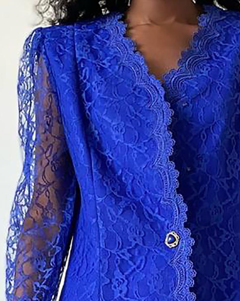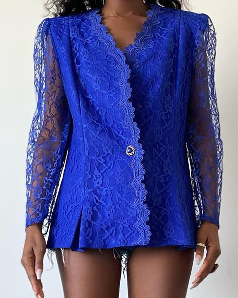 Crochet Lace Long Sleeve Plunge Blazer Coat