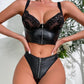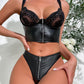 Crochet Lace Zipper Design PU Leather Lingerie Set