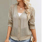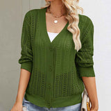Our cozy, long-sleeved women's cardigan will keep you comfortable and stylish with its soft crochet knit construction, open front, v-neck, and button-up closure. Perfect for a day out or evening in.