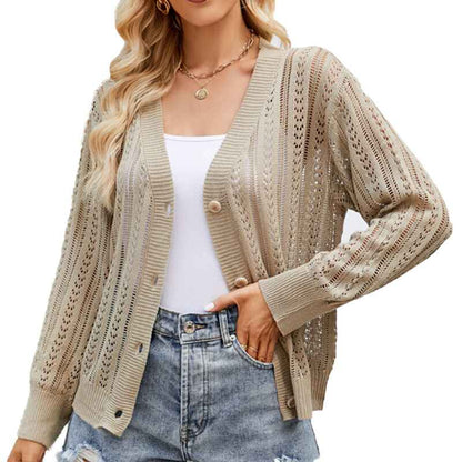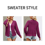 Cropped Cardigan Sweaters for Women Long Sleeve Crochet Knit Shrug Open Front V-Neck Button up Tops K592