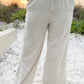Beige Smocked High Waist Wide Leg Plus Size Pants