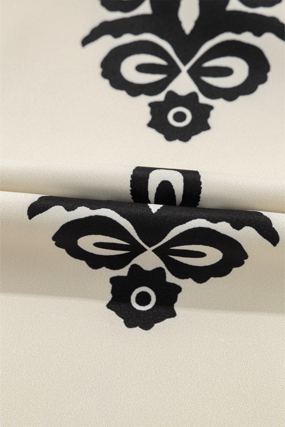 Beige Geometric Printed Sleeveless Hollowed Bowknot Back Mini Dress