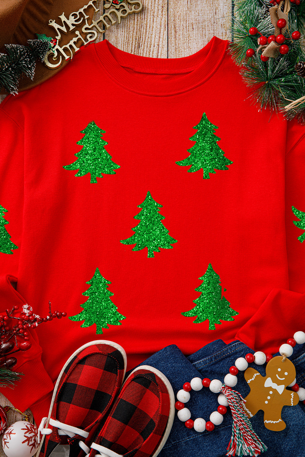 Red Christmas Tree Printed Holiday Fashion Sweatshirt