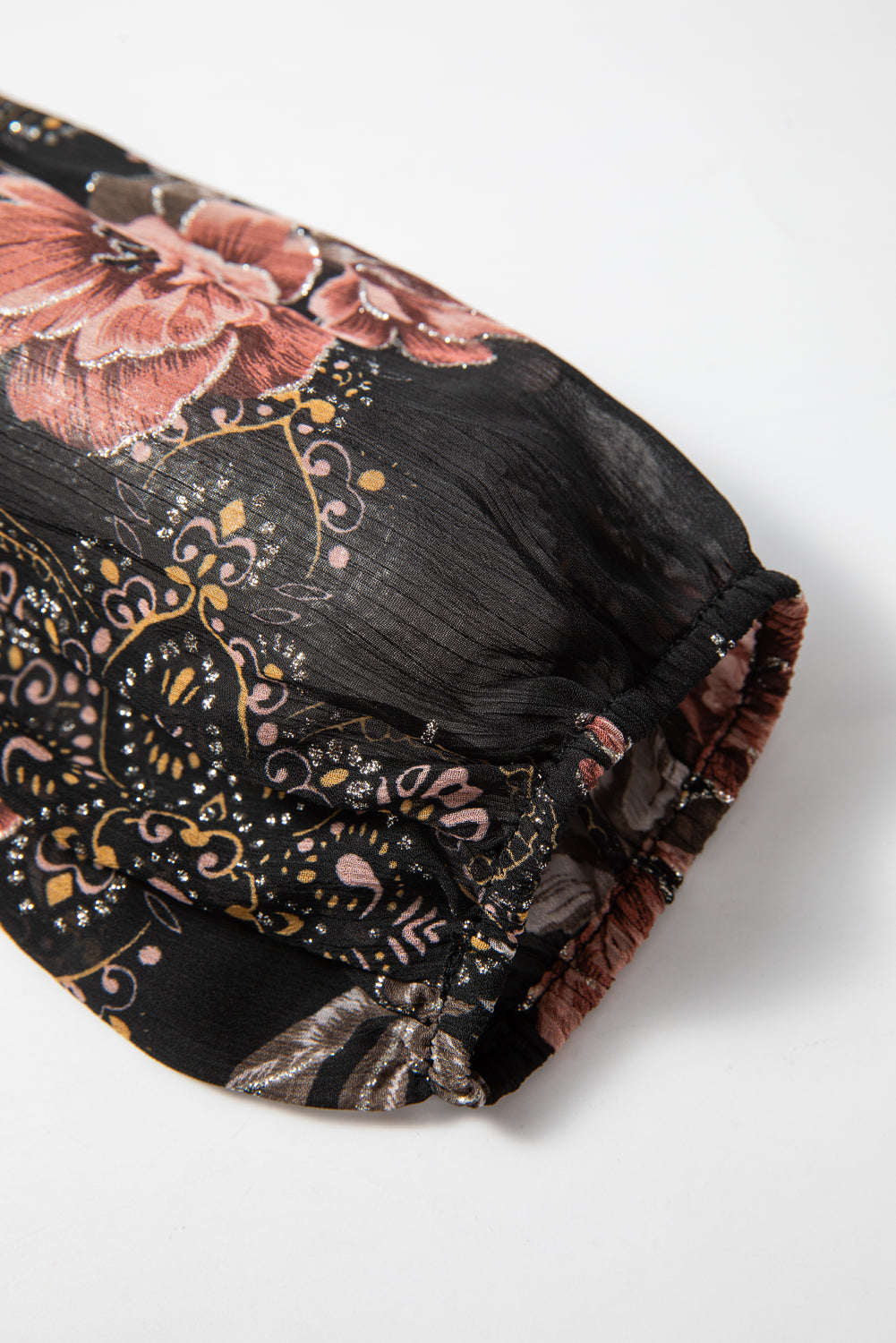 Black Floral Print Criss Cross V Neck Balloon Sleeve Blouse