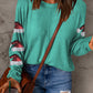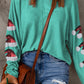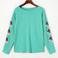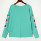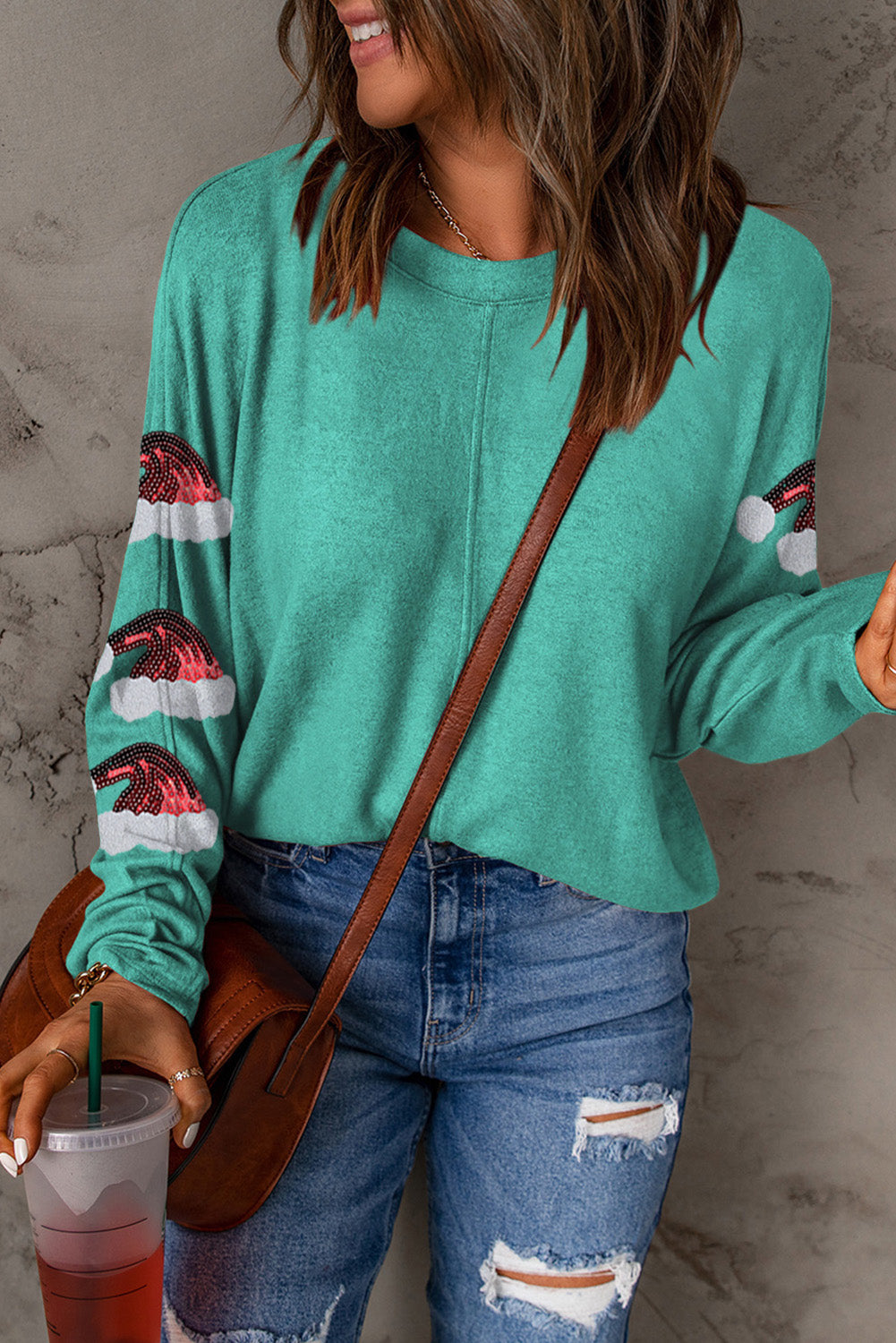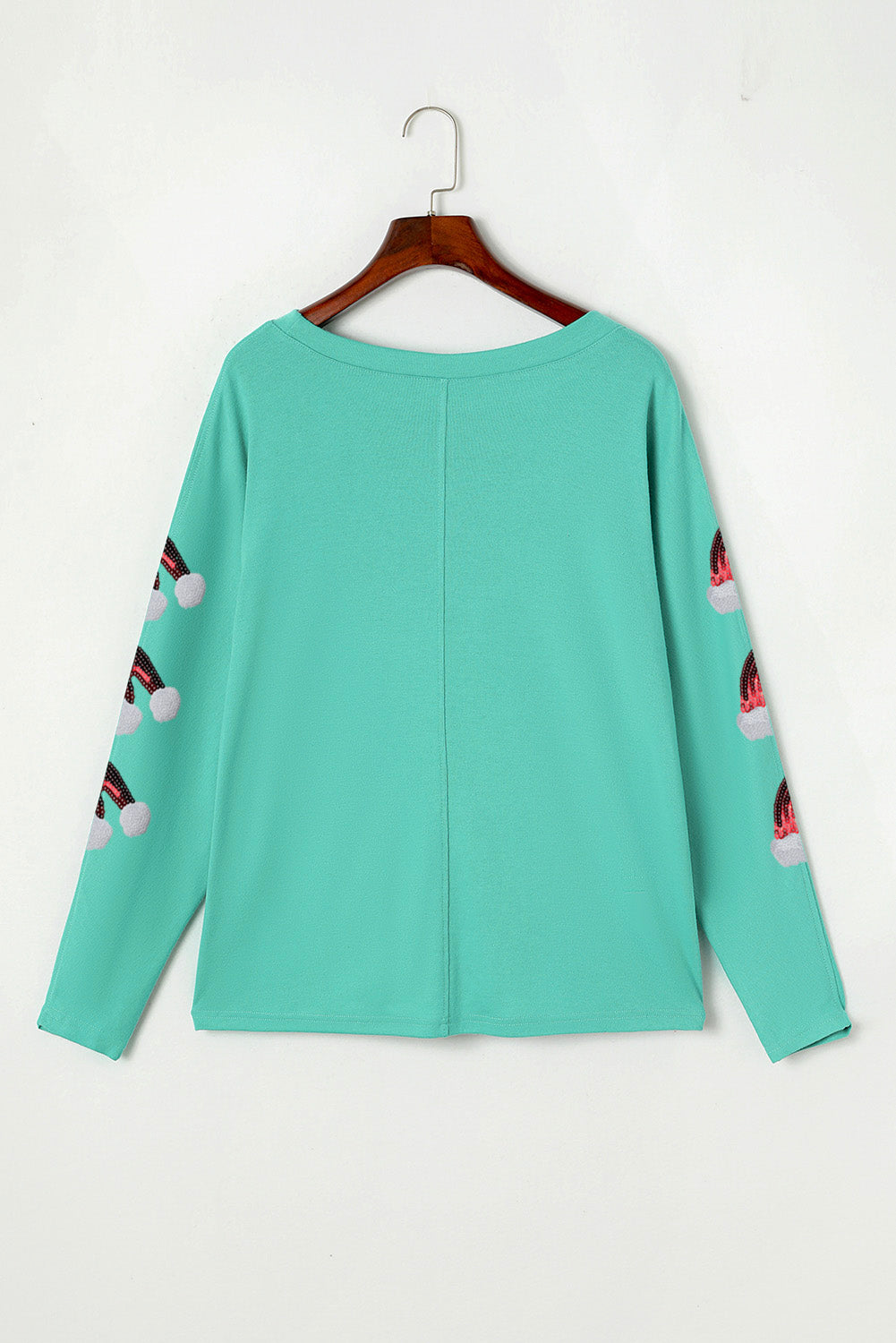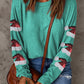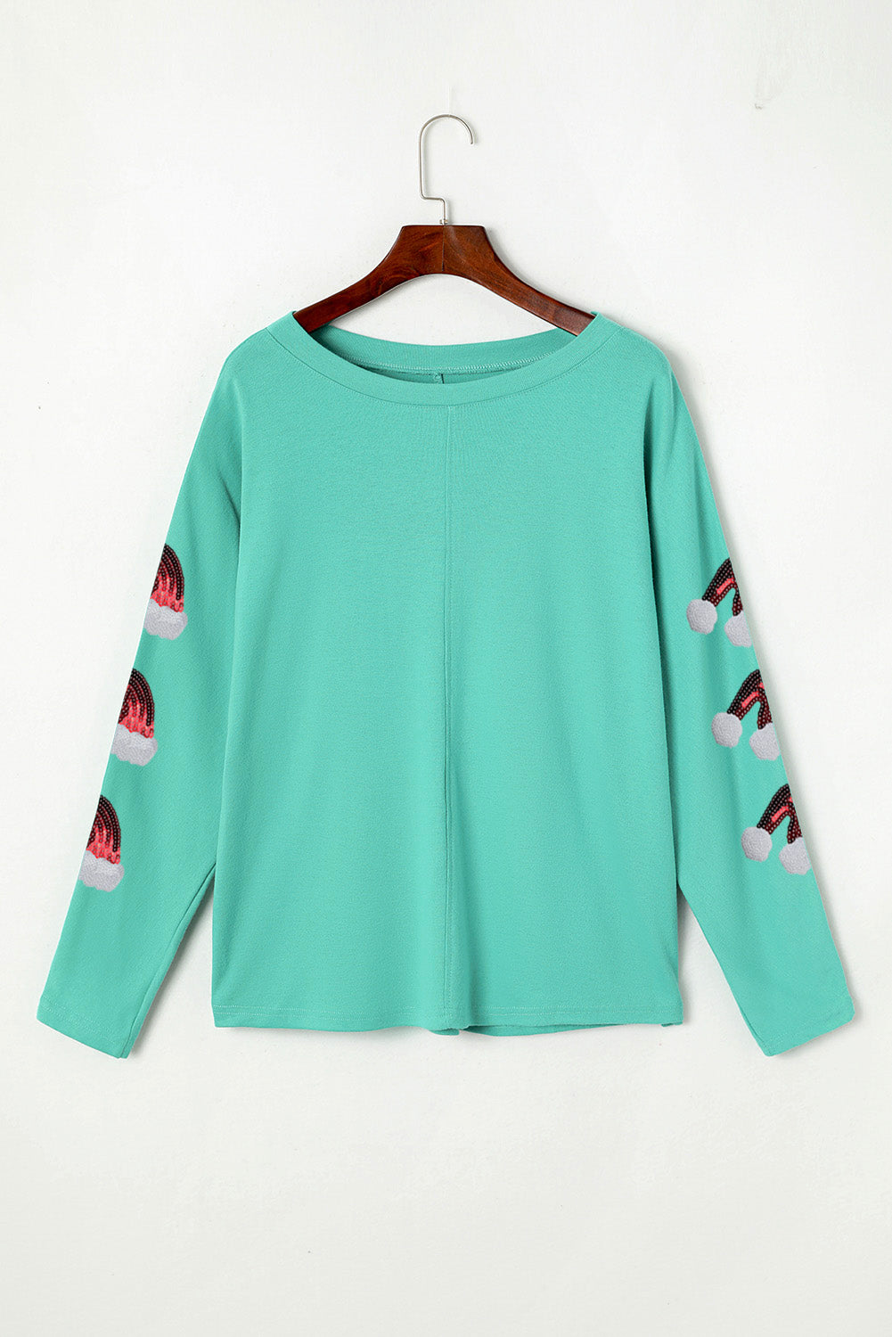 Green Sequined Santa Hat Long Sleeve Round Neck Top