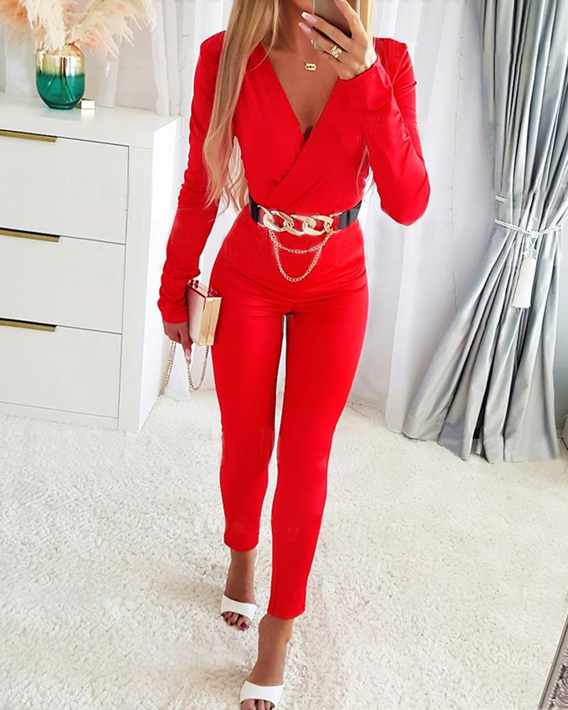 Deep V Neck Long Sleeve Jumpsuit