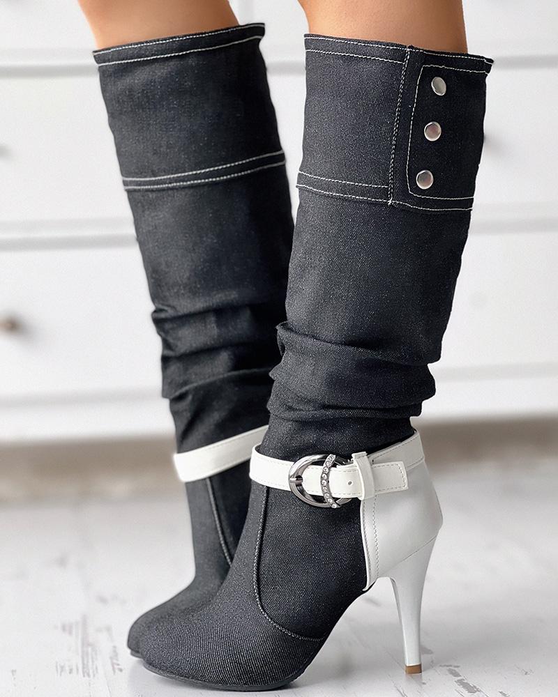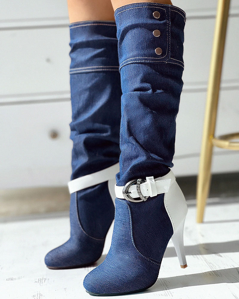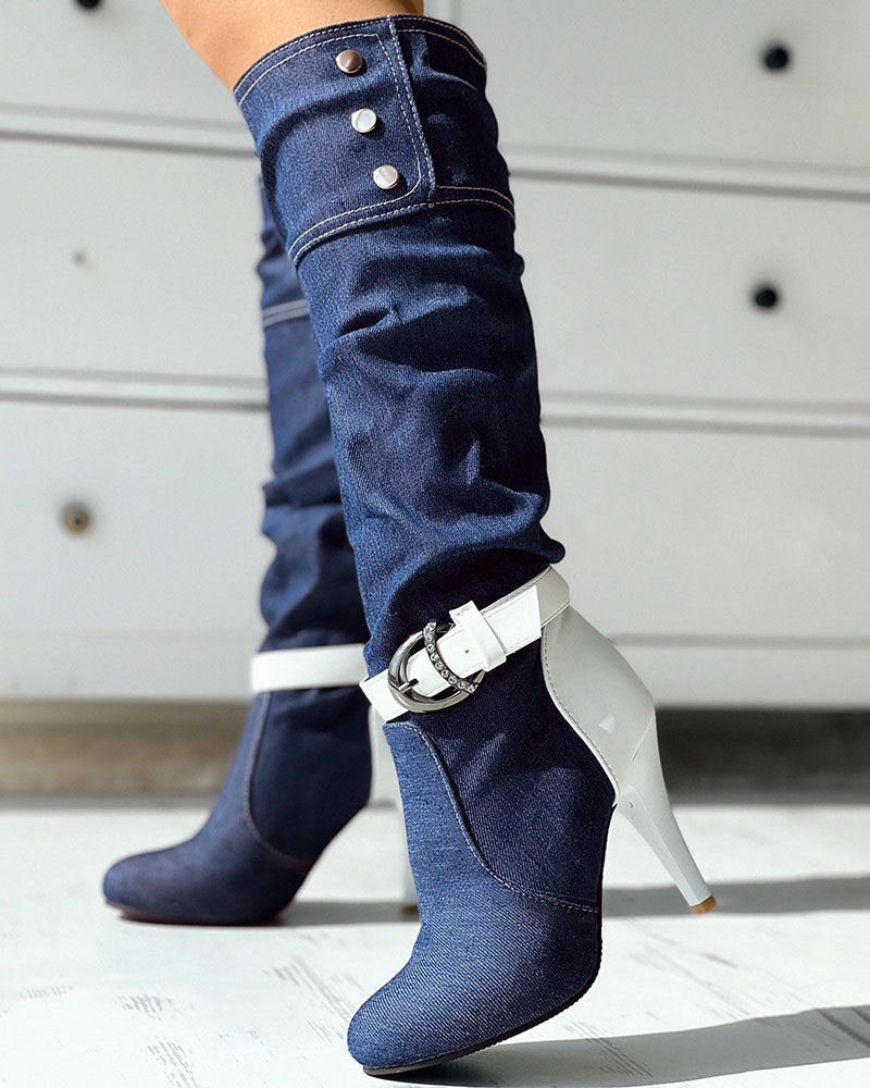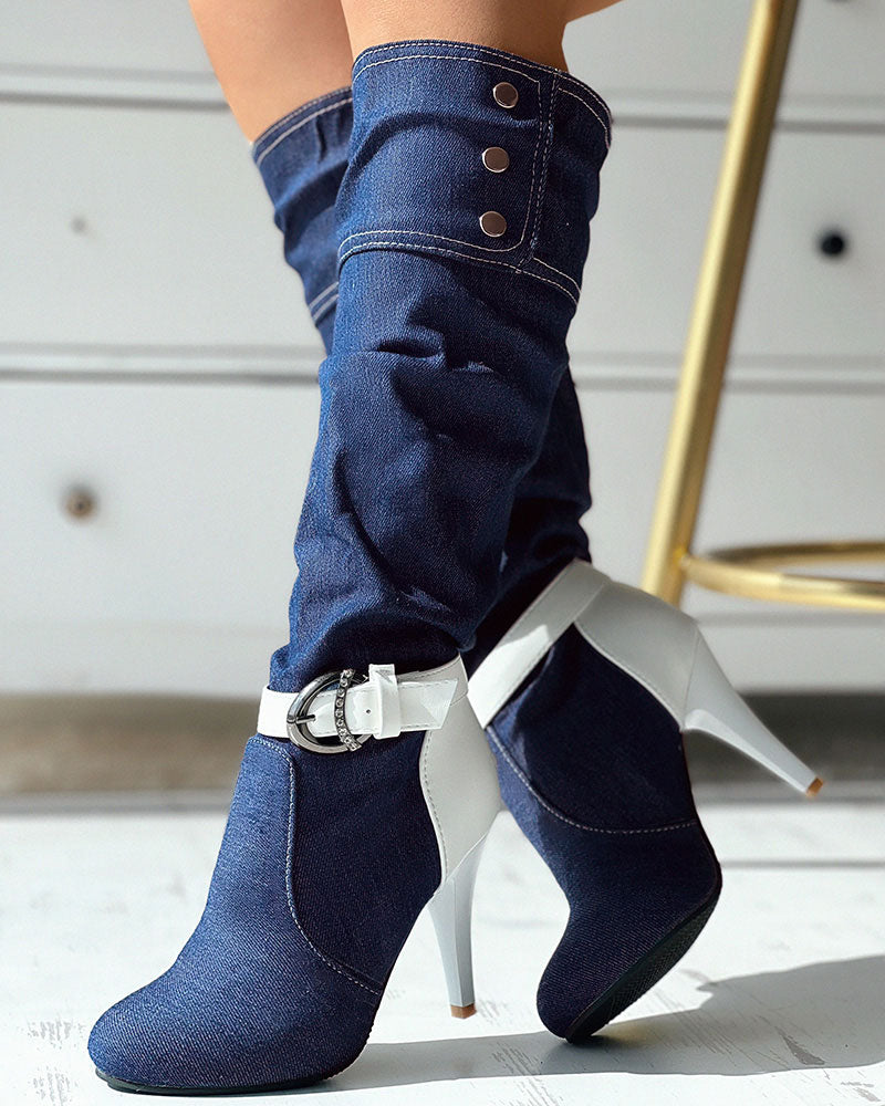 Denim Buckled Stiletto Heel Boots