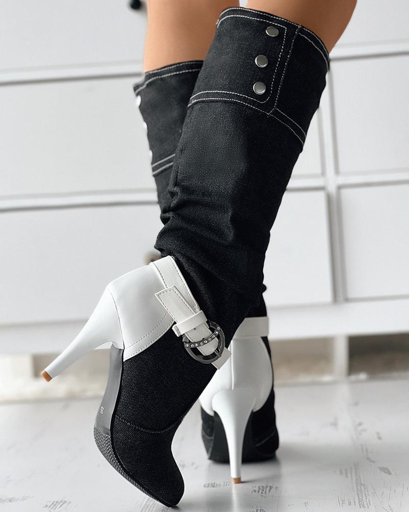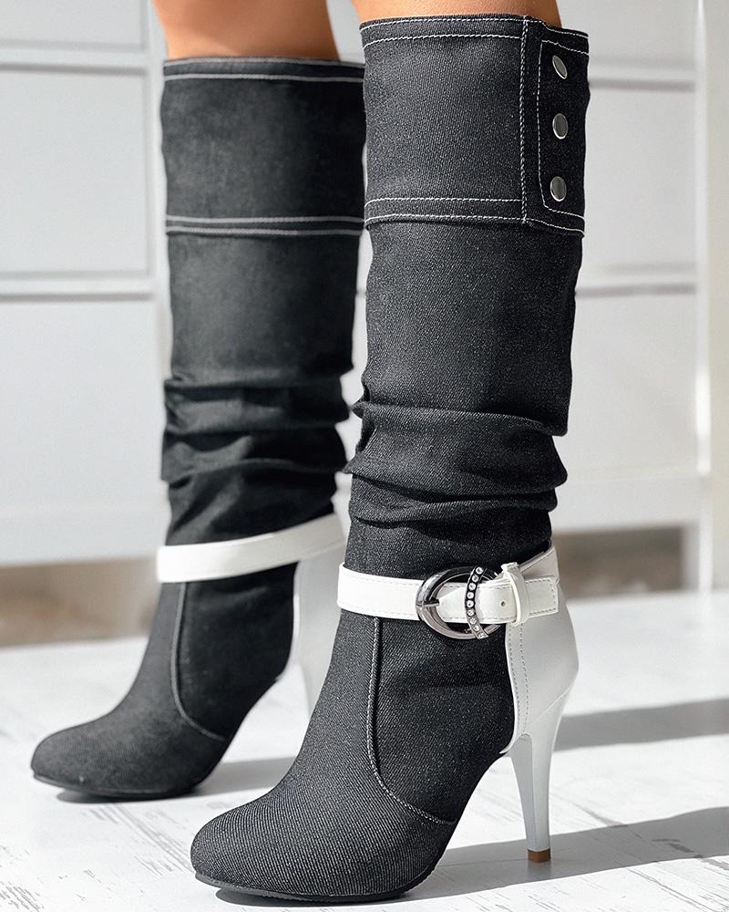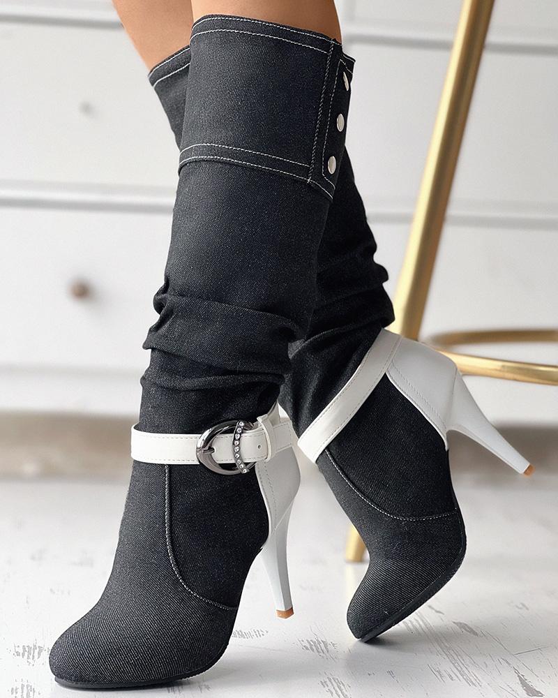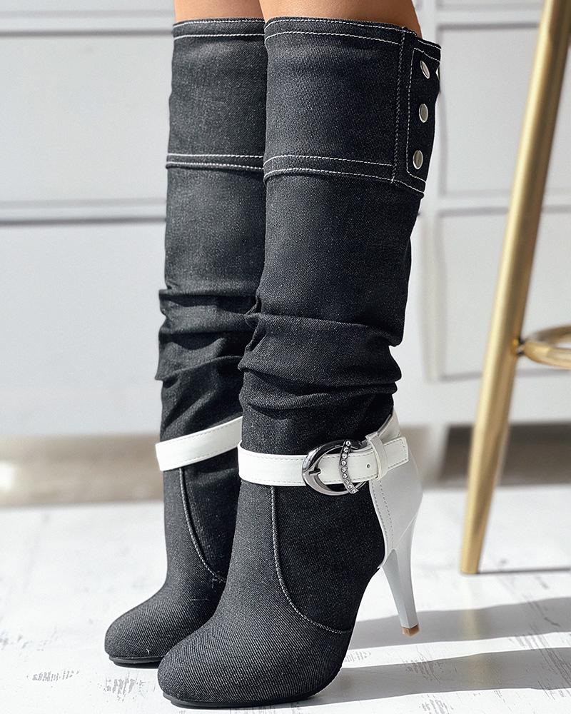 Denim Buckled Stiletto Heel Boots
