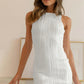 White Textured Wavy Sleeveless Bodycon Mini Dress