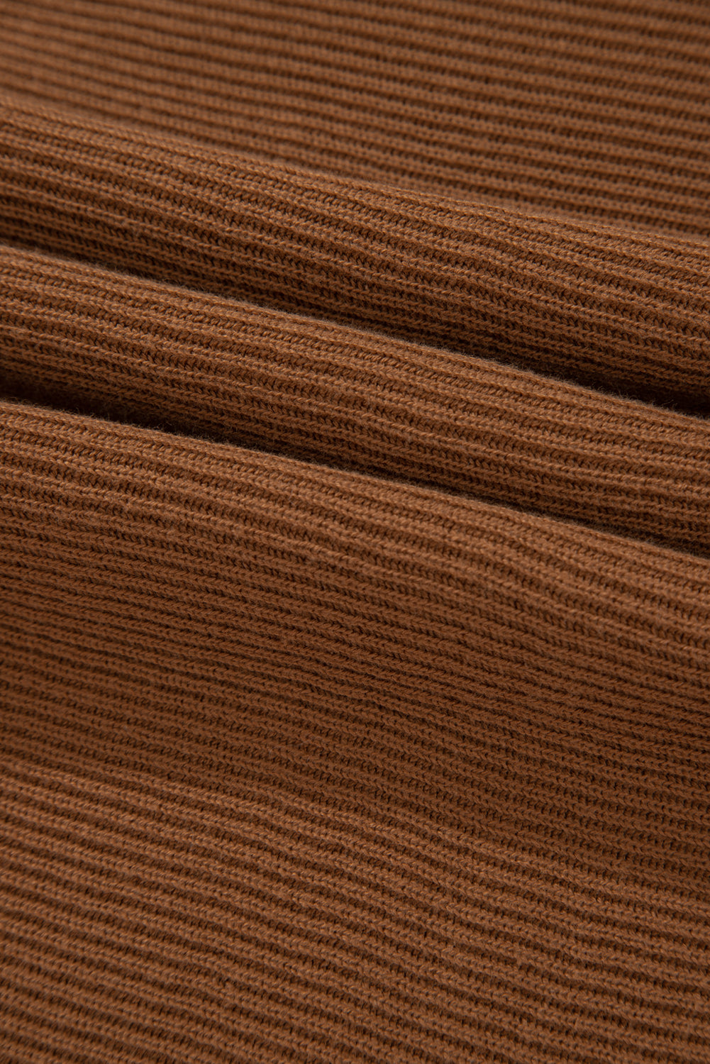 Camel Ribbed Knit Drop Sleeve V Neck Loose Fit Sweater
