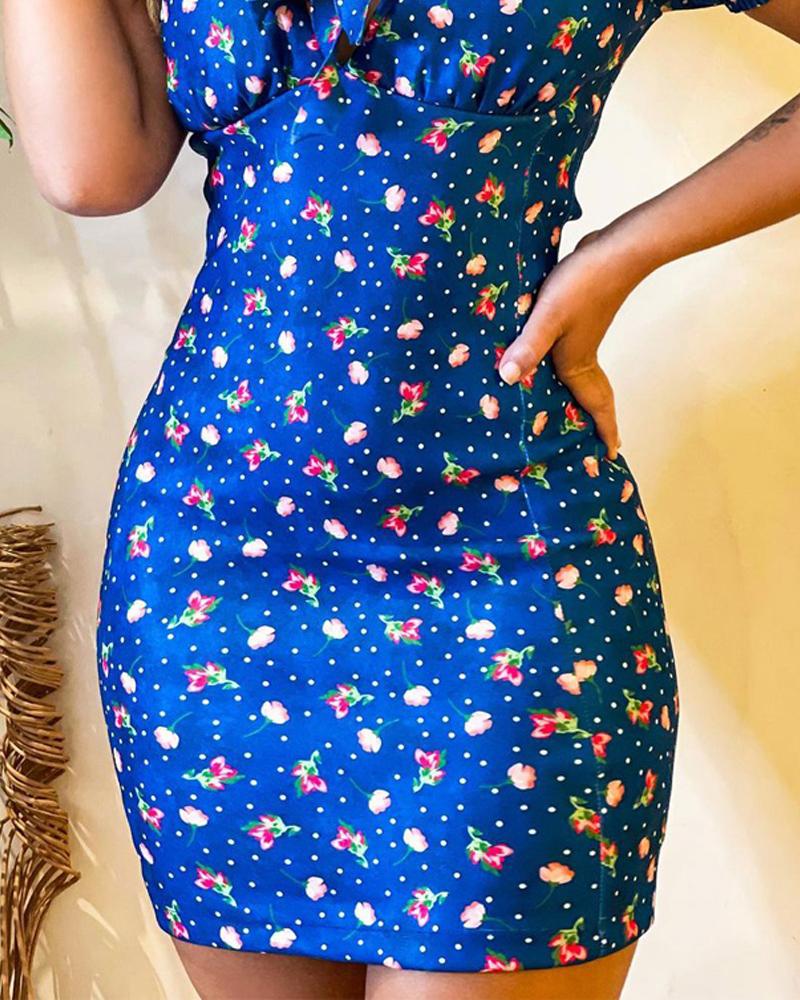 Ditsy Floral Print Off Shoulder Tied Detail Bodycon Dress