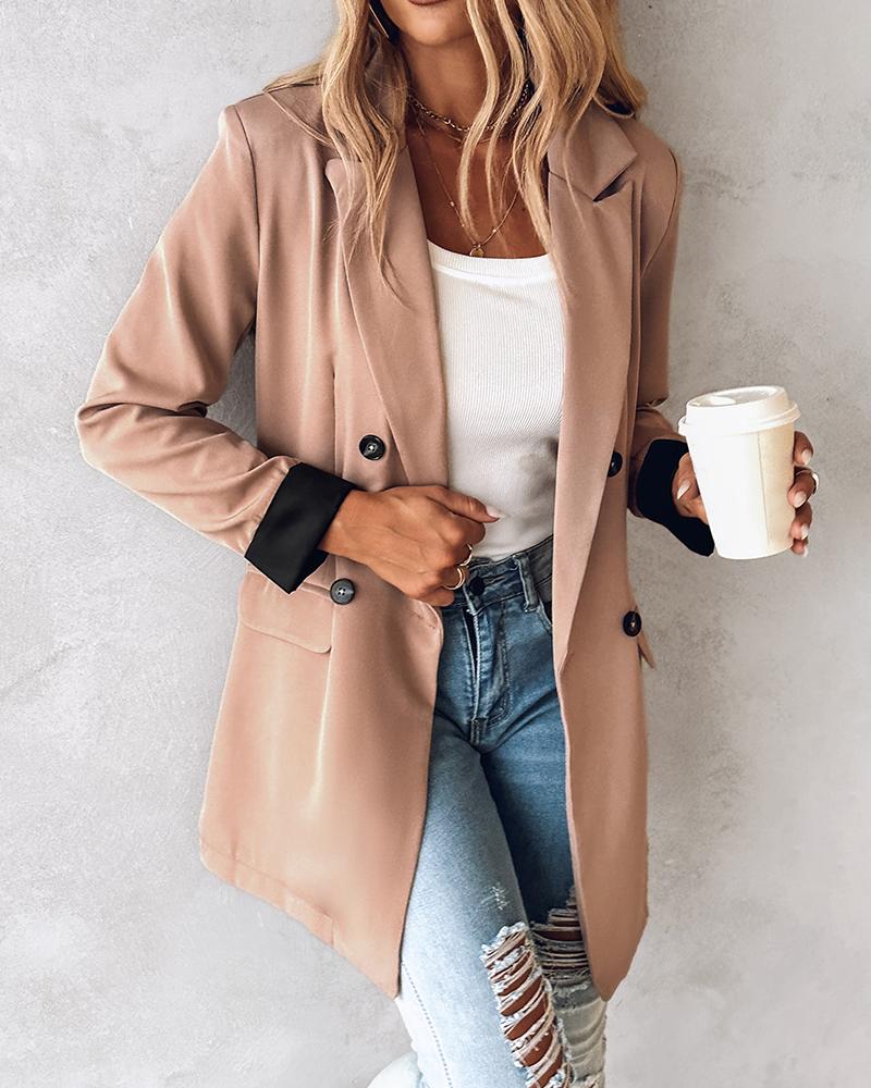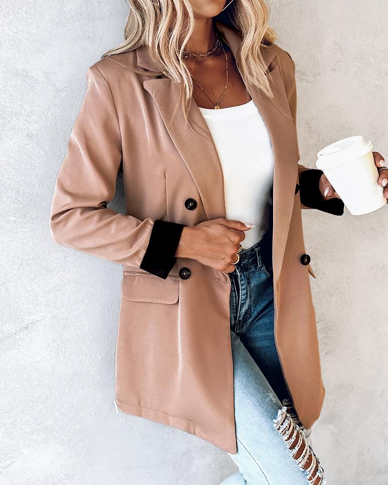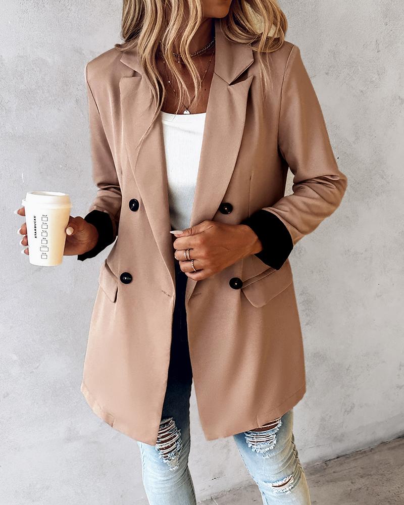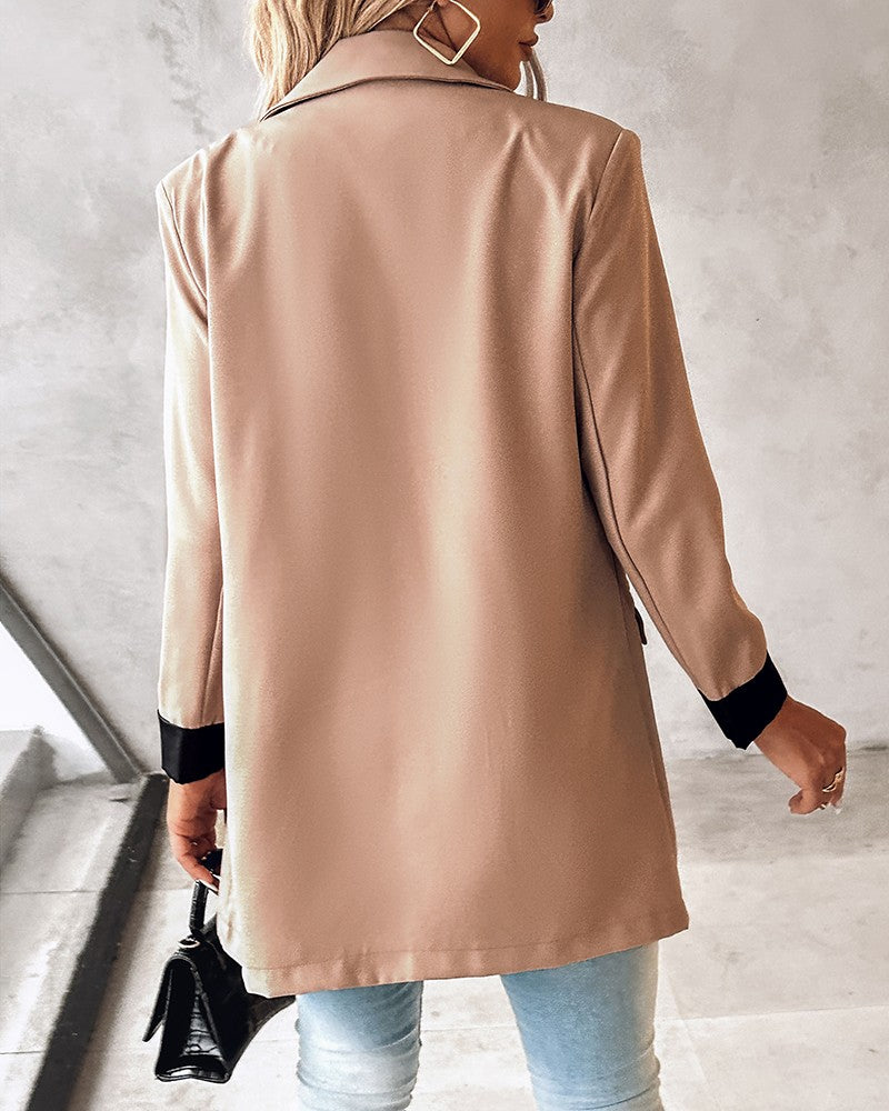 Double Breasted Notched Collar Blazer Coat
