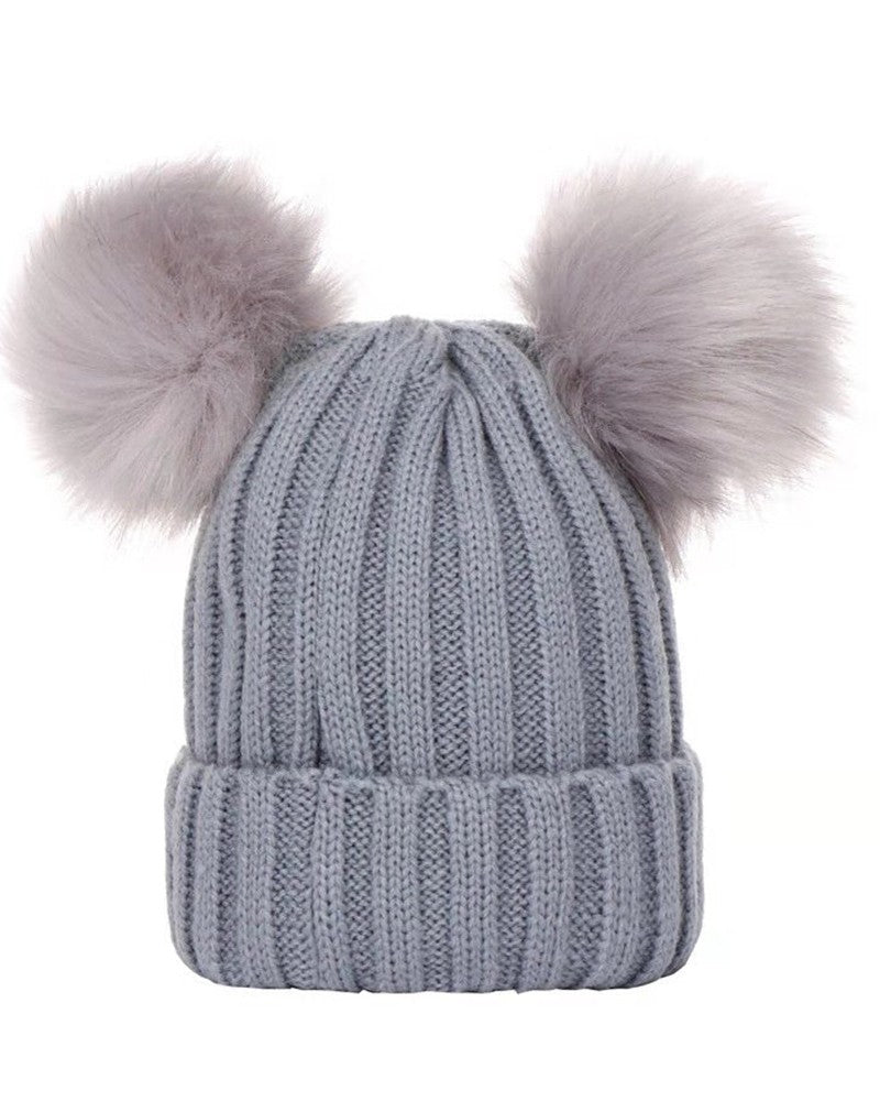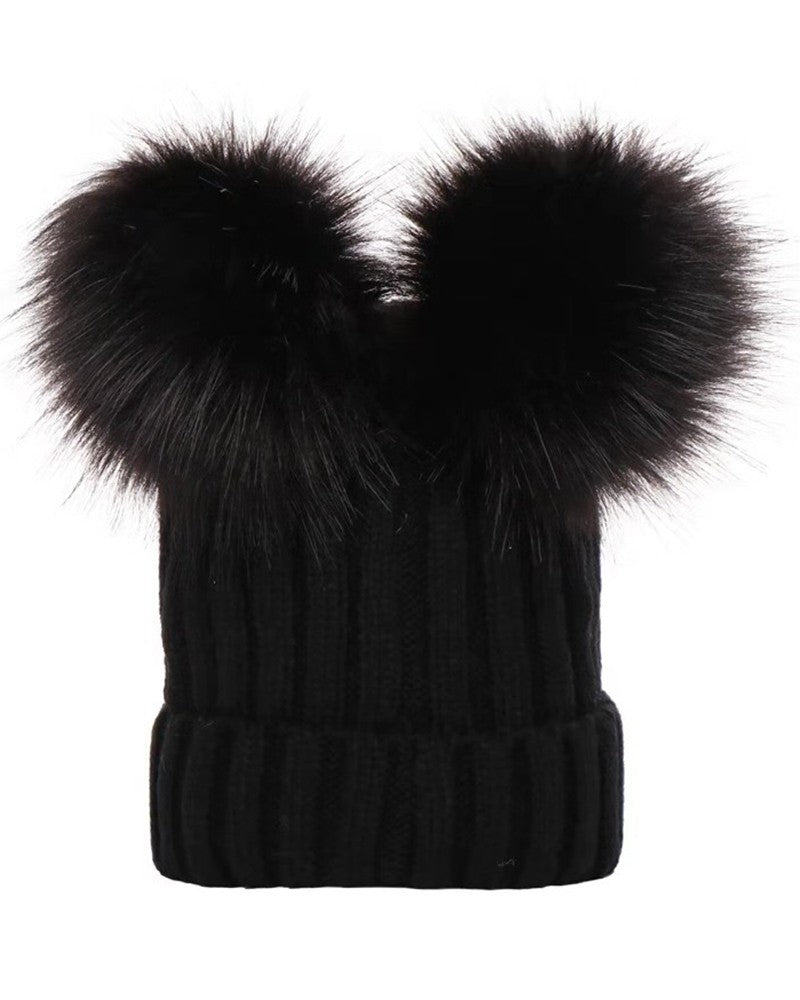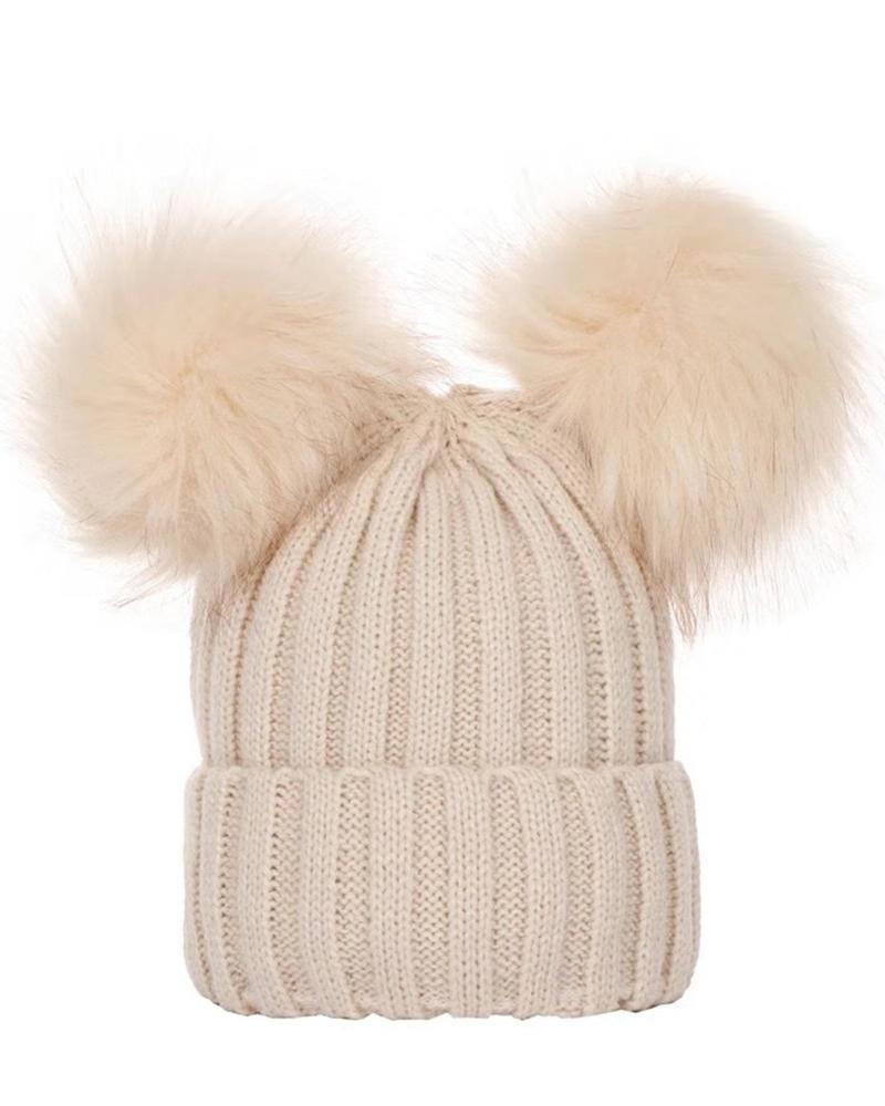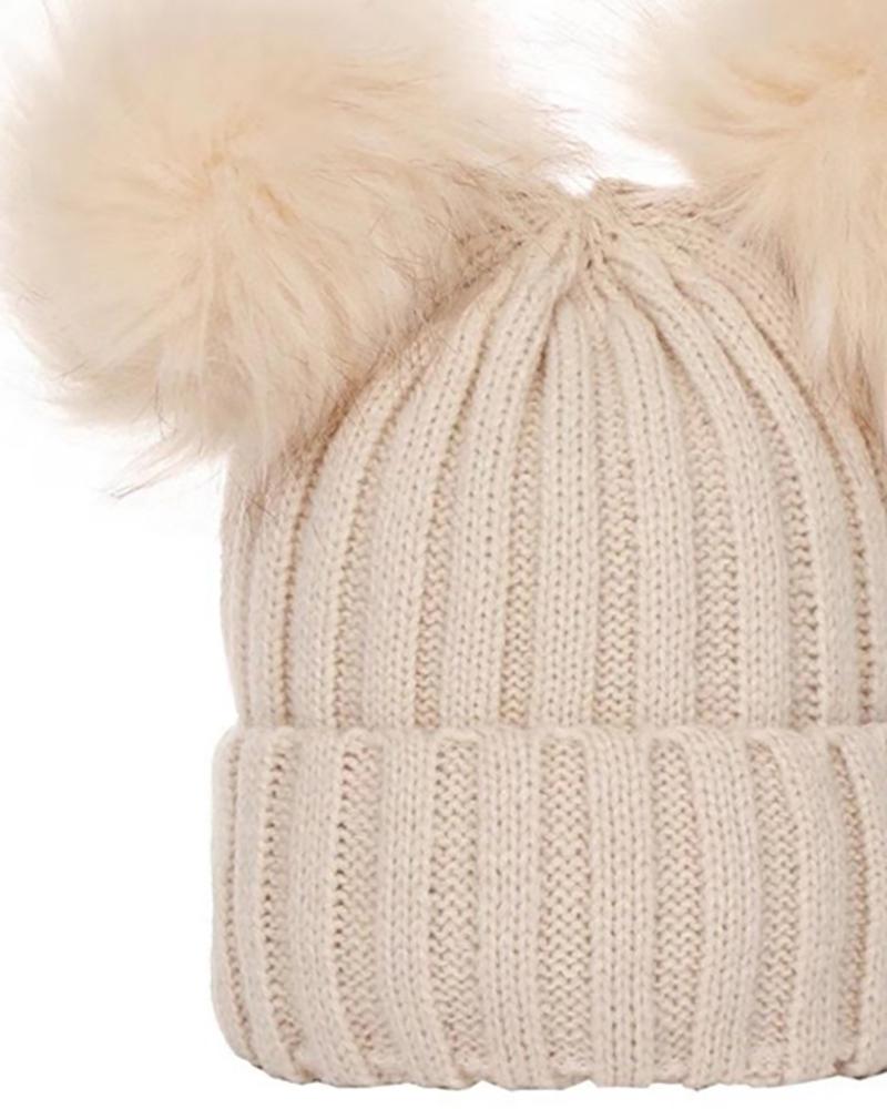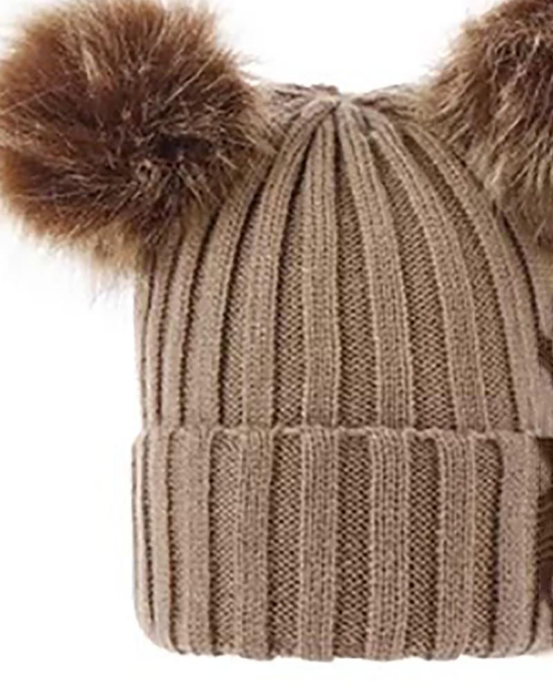 Double Pom Pom Decor Knit Cuffed Beanie For Adult