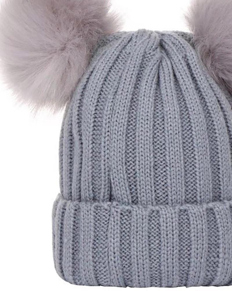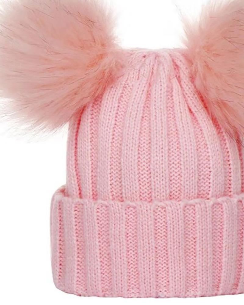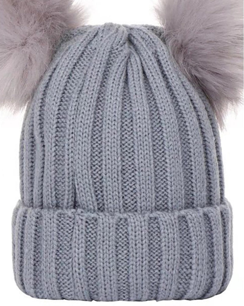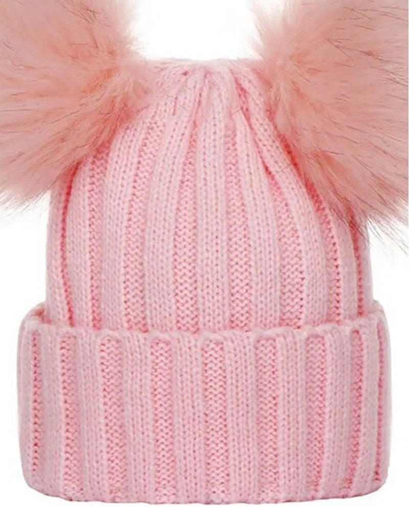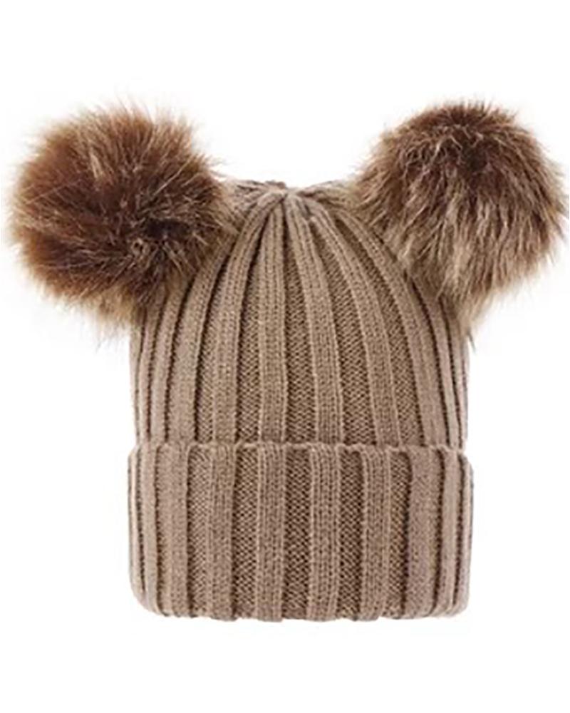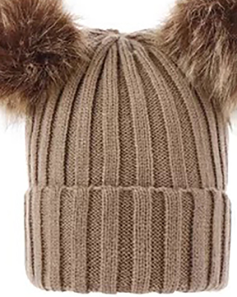Double Pom Pom Decor Knit Cuffed Beanie For Adult