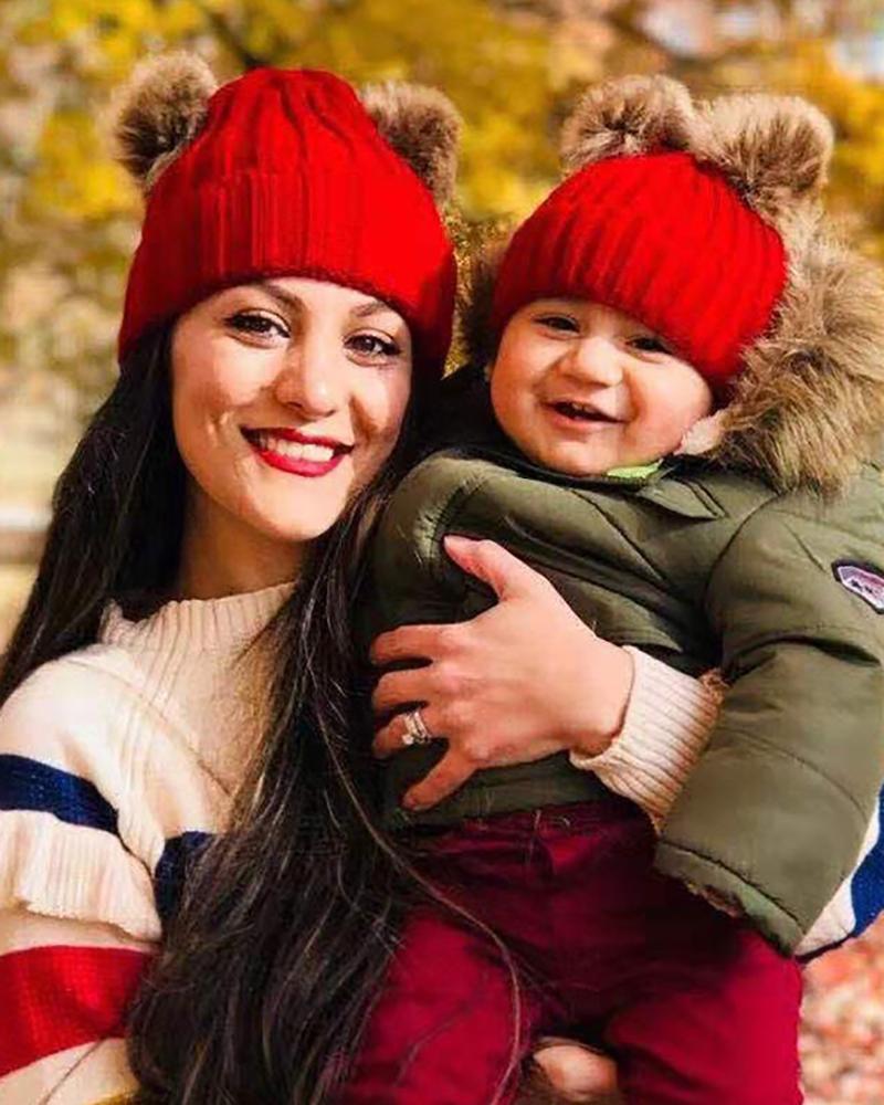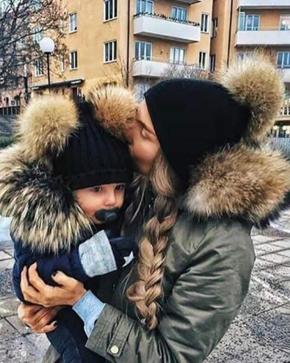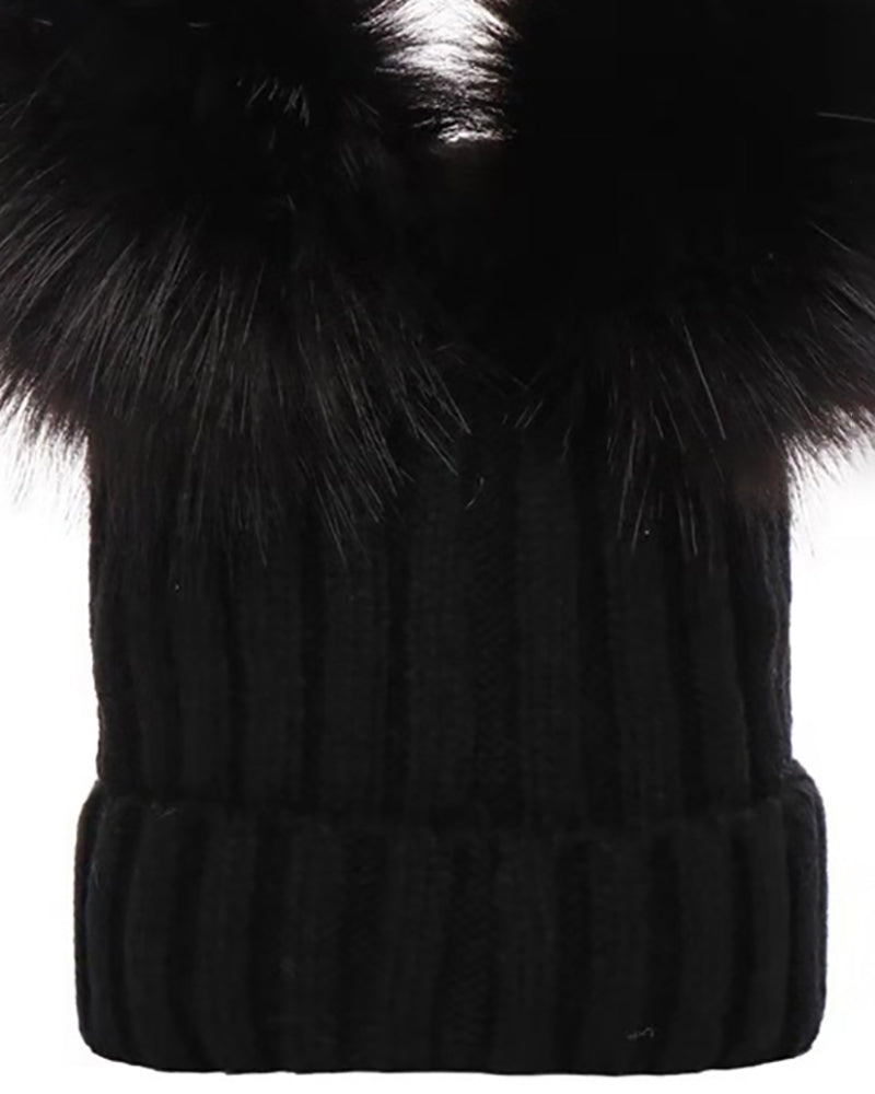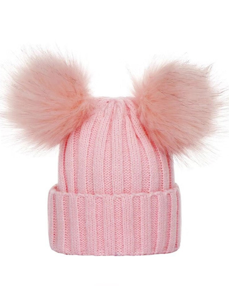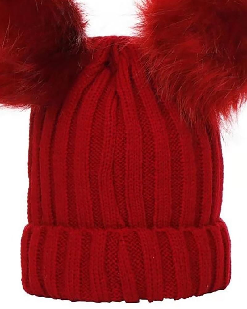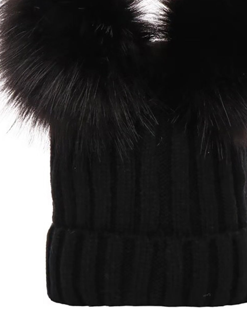 Double Pom Pom Decor Knit Cuffed Beanie For Adult