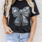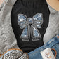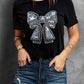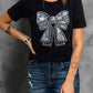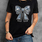 Black Rhinestone Bowknot Graphic Crewneck T Shirt