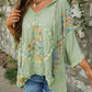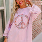 Light Pink Floral Peace Sign Graphic Drop Shoulder Wide Sleeve Casual Top
