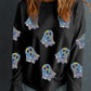 Black Glitter Ghosts Pattern Long Sleeve Halloween Sweatshirt