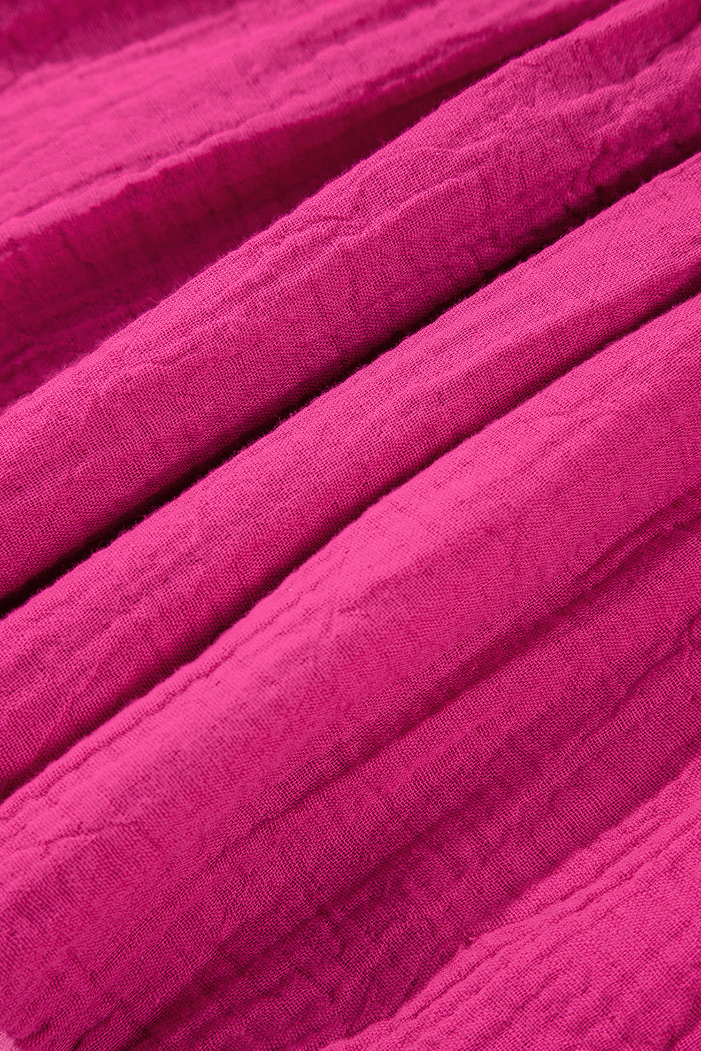Pink Crinkled Colorblock Patchwork Flutter Tiered Mini Dress